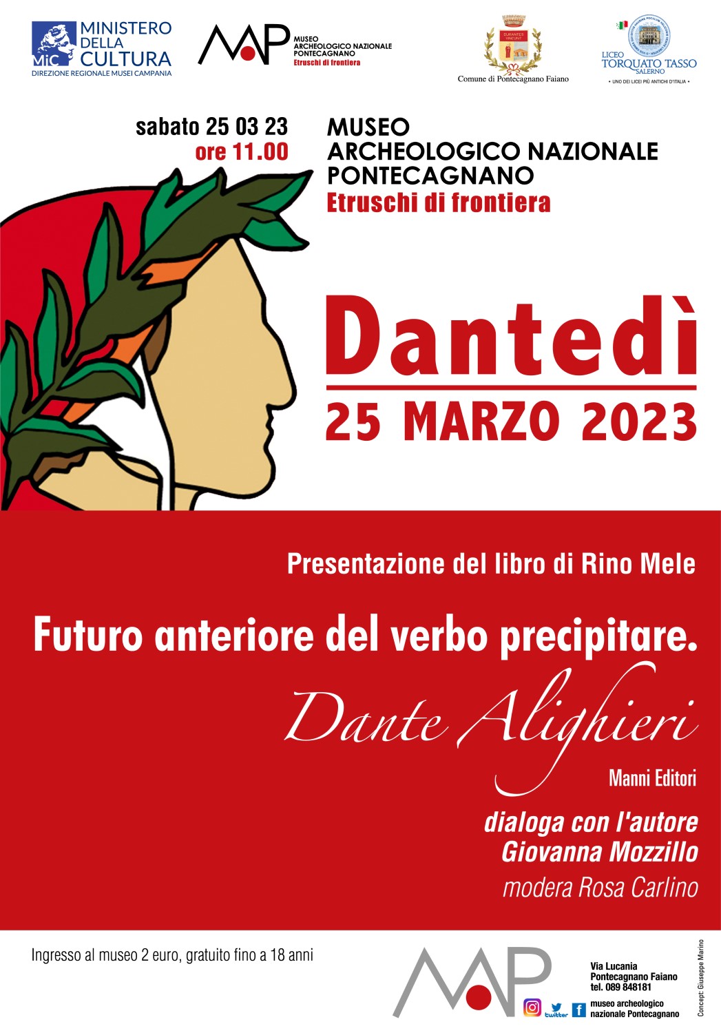 Sabato 25 marzo 2023, in occasione della Giornata nazionale dedicata a Dante Alighieri, promossa dal Ministero della Cultura, il Museo Archeologico Nazionale di Pontecagnano, in collaborazione con il Comune di Pontecagnano Faiano, aderisce alla celebrazione del sommo poeta nella data riconosciuta dagli studiosi come l’inizio del viaggio nell’Aldilà della Divina Commedia.