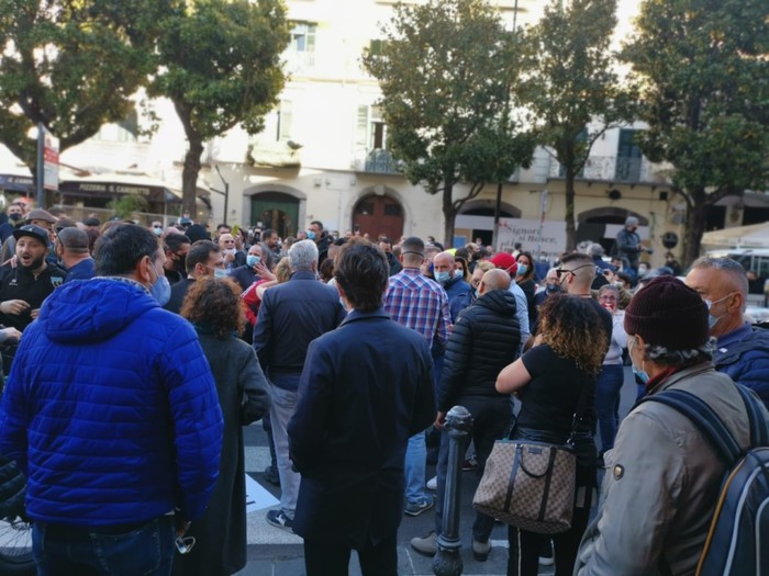 Un centinaio di commercianti poi, a Salerno, esasperati dalle ultime ordinanze che dispongono coprifuoco e chiusura anticipata degli esercizi commerciali, sono scesi in piazza per protestare.