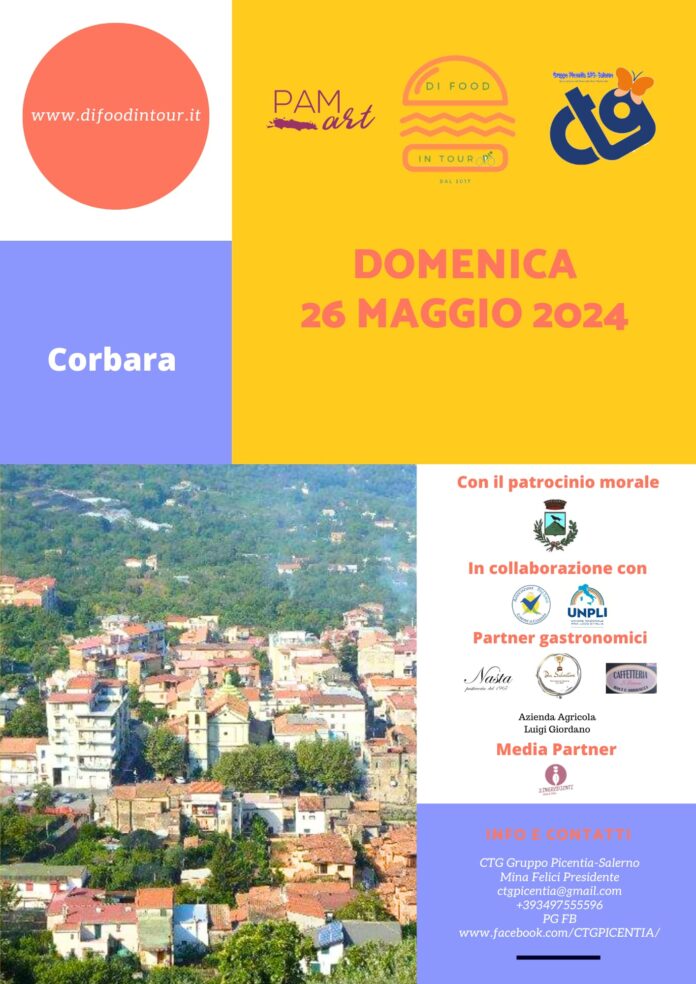 Domenica 26 maggio 2024 alle ore 10:00, vi sarà l’occasione per chi vorrà visitarla di conoscerne aspetti culturali ed enogastronomici, grazie al progetto itinerante e tutto al femminile “Di Food in Tour”, che proprio a Corbara inaugura la prima tappa dell’Agro-Nocerino-Sarnese. Dopo i saluti dell’Amministrazione comunale, rappresentata dal Sindaco Pietro Pentangelo, dal Vicesindaco Monica Tramparulo, dalla Consigliera con delega alle Attività Produttive Pina Giordano e della Pro Loco, che accoglieranno tutti con un caffè di benvenuto presso la Caffetteria Baci e Abbracci-S.Erasmo, si partirà dalla settecentesca Cappella di San Giuseppe, costruita ad opera della famiglia Giordano, circondata dalle tipiche abitazioni storiche, per approfondire la conoscenza del borgo, e ci si incamminerà sino all’inizio del percorso Grotta del Caprile-Chianiello-Parco Regionale dei Monti Lattari, per ammirarne le bellezze paesaggistiche e la maestosità. Corbara è il punto di partenza dei sentieri che raggiungono le pendici delle cime dei Monti Lattari. Il sentiero basso, che parte dal cosiddetto Borgo Sala e prosegue su questa direzione, raggiunge prima il Chianiello di Angri e poi il Castello di Lettere. Risalendo poi le pendici, si può raggiungere la Grotta del Caprile, il Monte Cauraruso, il Sentiero 300 che è la via alta dei Monti Lattari sino al Monte Cerreto.