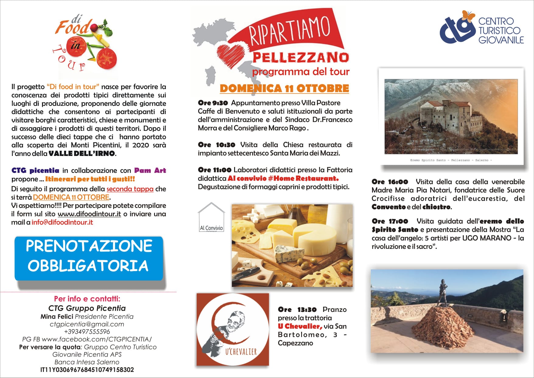 Queste le riflessioni piene di speranza della Presidente Mina Felici, capogruppo del CTG Picentia, insieme alle Dott.sse Annamaria Parlato e Maria De Vita organizzatrici della seconda tappa di Di Food in Tour a Pellezzano, in data 11 ottobre 2020. Pellezzano deriva da “fundus Pellitianus” di proprietà del patrizio romano Pellitius o Pelitius con l’aggiunta del suffisso “anus” che indica appartenenza. Il territorio ha vissuto tutta la storia del meridione, dalla civiltà degli etruschi a quella greco-lucana (dall’inizio deil VI secolo a.C. alla metà del III secolo a.C. come dimostra il complesso archeologico di Fratte), dall’avvento dei Picentini alla dominazione romana, come testimoniano la villa romana di Sava e i vari rinvenimenti in tutta la Valle dell’Irno, dalle invasioni barbariche alle incursioni saracene, dalla dominazione longobarda a quella borbonica. Col passare dei secoli, in questo territorio, situato nella media Valle dell’Irno, si erano formati Casali, ben distinti fra loro, di essi cinque incorporati nella Università di Salerno. I Casali ad occidente della Valle erano: S.Nicola, Coperchia, Pellezzano, Capriglia, Cologna, Nofilo e Casal Barone. Il Consiglio d’Intendenza della Provincia, con deliberazione in data 3 febbraio 1819, si pronunciò per il distacco dei Casali dall’Università di Salerno. Nel mese di dicembre del 1819, nacque, così, il Comune di Pellezzano. Pellezzano è famosa per il “sciusciello”, un alimento tipico regionale a cui sono dedicate anche alcune manifestazioni estive. Il tour prenderà il via dopo un caffè di benvenuto e i saluti istituzionali del Sindaco Dott. Francesco Morra e del consigliere comunale Marco Rago presso Villa Pastore, una struttura del XVIII sec. donata alle Suore Crocifisse Adoratrici dell’Eucarestia dalla casata da cui prende il nome. Nella frazione di Coperchia una sosta nella Chiesa di Santa Maria alli Mazzi servirà per far conoscere la magnificenza dei suoi affreschi e cappelle. Presso la fattoria didattica Al Convivio – Home Restaurant i visitatori potranno degustare particolari formaggi prodotti dall’azienda e partecipare ad un’interessante food experience con prodotti locali. Un pranzo a base di pietanze tipiche sarà servito presso “U’Chevalier Pizza & Trattoria”. Nel pomeriggio i visitatori andranno alla scoperta della Casa della venerabile Madre Maria Pia Notari, fondatrice delle Suore Crocifisse, del convento e del chiostro. Subito dopo ci si dirigerà verso l’Eremo dello Spirito Santo immerso in una meravigliosa distesa di ulivi, dove sarà possibile ammirare anche la mostra “La casa dell’angelo -5 Artisti per Ugo Marano” programmata e finanziata dalla Regione Campania, realizzata e promossa dalla Scabec S.p.A. con il Comune di Pellezzano. Infine a Villa Pastore una degustazione guidata di formaggi caprini freschi e stagionati sarà l’occasione per apprezzarne le caratteristiche organolettiche e nutrizionali. Il Food Blog 2Ingredienti Arte&Cibo sarà media partner dell’evento.