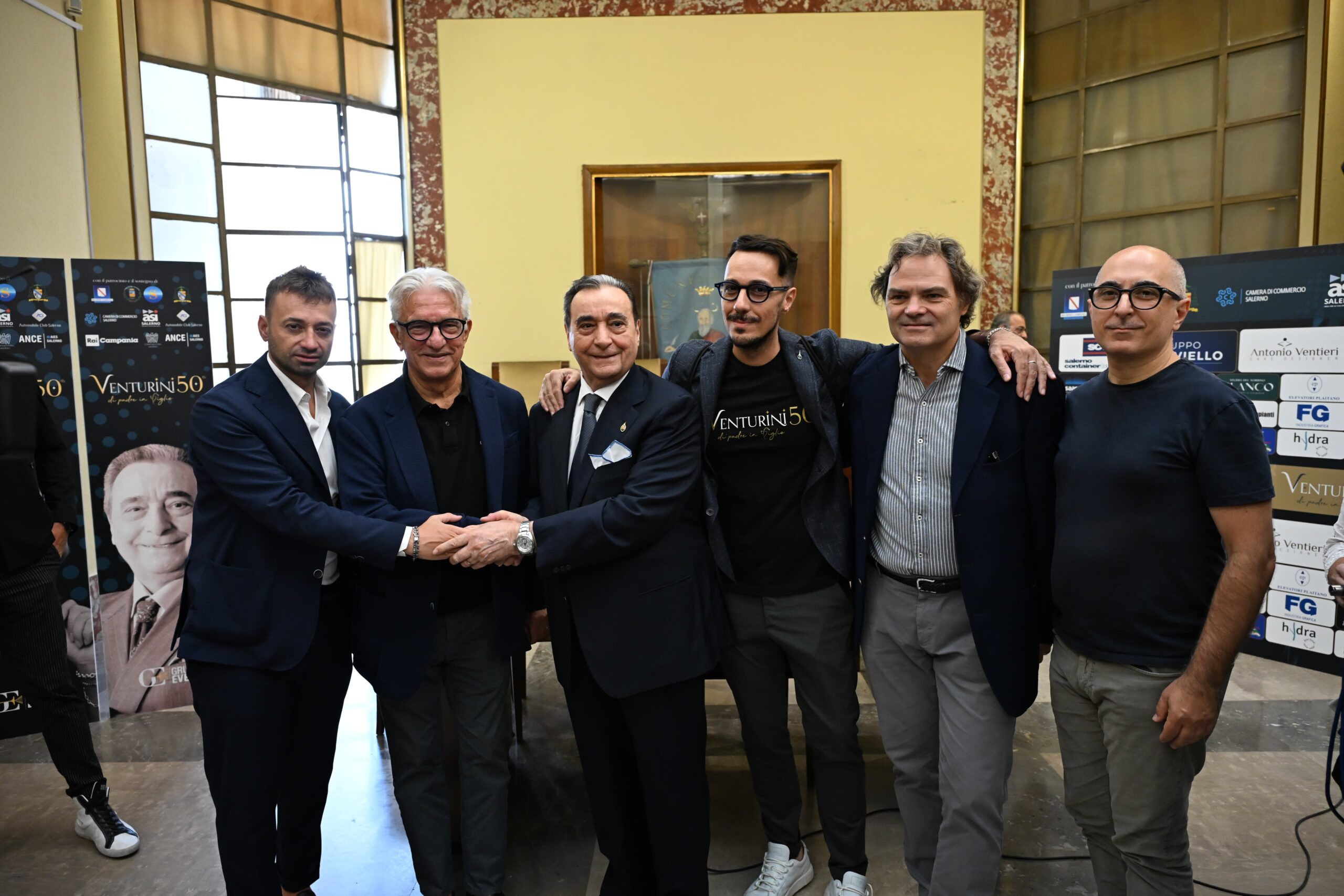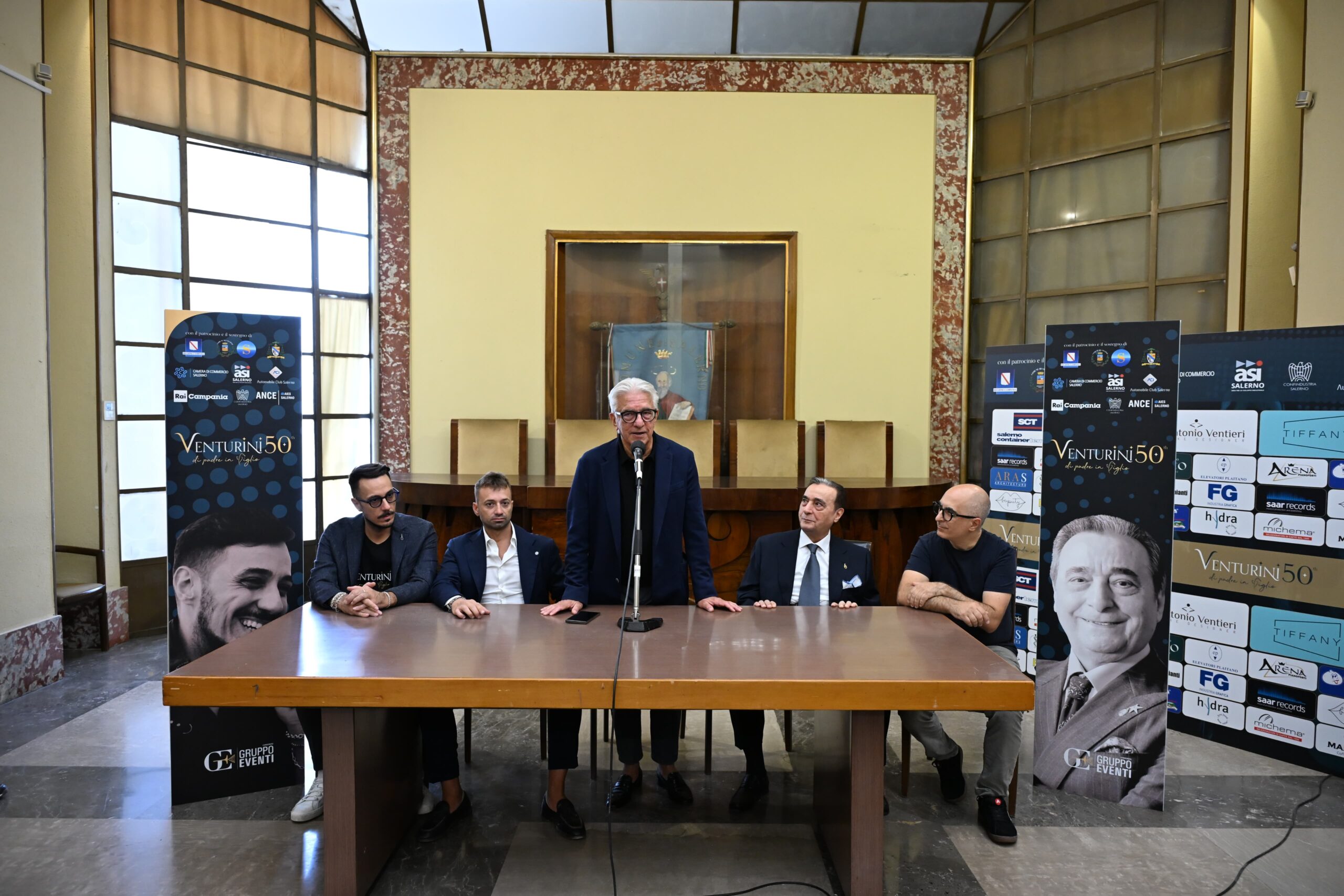 IL SALOTTO CON IL MONDO DELLA CULTURA E DELLE ISTITUZIONI. A precedere il concerto-evento, a partire dalle 16, sempre nell’atrio del Duomo, reso sfavillante dall’allestimento di FG Industria Grafica, curato nei minimi dettagli attraverso la progettazione a cura dello studio ARAS di Salerno, ci sarà un momento di confronto con i protagonisti del mondo della cultura, del giornalismo e dell’imprenditoria. Tra questi, solo per citarne alcuni, Agostino Gallozzi, Bruno Voto, Stefano Santoro, Candeloro Plaitano, Giovanni Chiaiese e Federica Salvati, Erminia Pellecchia, Claudio Tortora, Michele Tedesco, Antonio Penna, Marco D’Amato, Nello Savarese, Nicola Gallo, Francesca Beayouty Ragone, Pasquale Sessa, i fratelli Paraggio, la famiglia Verdoliva, Enzo Guariglia. Ma l’elenco è lunghissimo è per scoprirlo non resta che partecipare. Nei salotti curati da Radio Castelluccio e Telecolore, arriveranno, per ricevere la targa “Venturini 50th – Di padre in figlio”, tanti esponenti della società civile che racconteranno le loro esperienze umane e professionali, in una cornice resa dolce da “Le letterine” del pastry chef Antonio Ventieri, autore della torta da 1,5 metri che salirà sul palco, dalle bollicine offerte da Ciro Noviello del Gruppo Noviello e dal caffè Michema di Pasquale Memoli, preparato in team con il bar Tiffany. E tra le chicche, Ciro Girardi, icona di creatività che renderà divertente il pomeriggio al Duomo.
