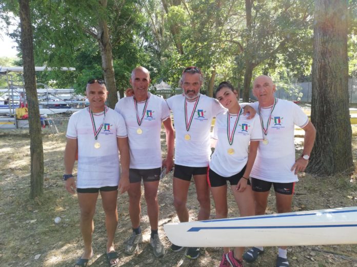 Sono salernitani i Campioni Italiani di canottaggio nella categoria “Master F 4 Con” e “Master F 4 Senza” che sabato e domenica, hanno gareggiato nelle acque del bacino della Standiana, a Ravenna, dove si è svolto uno dei più importanti appuntamenti del canottaggio amatoriale: il Campionato Italiano di Master di canottaggio che va dal Master A (over 27 anni) al Master H che vede coinvolti atleti con più di 70 anni. Gli atleti del “Circolo Canottieri Irno” di Salerno, presieduto dal dottor Giovanni Ricco, sono: Gigi Galizia, (58 anni); Alfonso Sanseverino, (62 anni); Pasquale Cammarota (59 anni) e Renato Grimaldi (68 anni) che hanno vinto il titolo italiano “Master F con”, con al timone la giovanissima Morena Galizia, e, dopo circa un’ora, anche il titolo “Master F senza” che non prevede la presenza del timoniere. I “diversamente giovani” atleti hanno sbaragliato gli altri sei equipaggi avversari, remando con tutta la forza che avevano in corpo: con grinta e determinazione hanno fatto scivolare la loro imbarcazione senza difficoltà, velocemente, fino al traguardo dove è esplosa la loro gioia, manifestata con un urlo liberatorio. L’esperienza e la loro passione per il canottaggio, sono state fondamentali per vincere in un evento sportivo che ha visto la partecipazione, nelle varie categorie, di oltre 600 atleti provenienti da 79 società italiane. Una vittoria, quella nella categoria Master F, i cui atleti hanno un’età compresa tra i 60 e i 65 anni, che i canottieri salernitani hanno dedicato ai giovani del loro Circolo e non solo, come ha spiegato il professor Gigi Galizia, già Campione Italiano di canottaggio e anche Allenatore Federale:” La nostra vittoria dimostra che nello sport non c’è età! Tutti possono e devono praticare uno sport”. Vittoria doppiamente importante per Galizia che è anche l’allenatore della squadra: ” Avere mia figlia come timoniere è stata un’emozione unica!”.