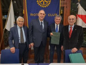 “Nella vita bisogna avere una visione: che guidi le nostre azioni, le nostre decisioni, i nostri comportamenti e ci consenta di trasformare i sogni in realtà”. Con queste significative parole ha concluso il suo intervento il dottor Giovanni Ricco, presidente dello storico “Circolo Canottieri Irno” di Salerno, che è stato il protagonista della conviviale rotariana organizzata dal “Rotary Club Salerno” presieduto dal dottor Francesco Caggiano che, anche da socio del sodalizio sportivo che vanta oltre cinquecento soci, ha ricordato che fino a qualche anno fa tra i soci del Circolo si parlava soltanto delle medaglie vinte nelle gare sportive:” Da alcuni anni il “Circolo Canottieri Irno” pone sempre più attenzione sul tema dell’inclusione di persone che hanno qualche difficoltà psicomotoria. Anche il Rotary si occupa di inclusione e tante sono state negli anni le iniziative attivate dal nostro Club, insieme agli altri Club Rotary salernitani, per sostenere i progetti del Circolo”.  Il Presidente Giovanni Ricco, ha ricordato che  da anni si è instaurato un rapporto di amicizia e collaborazione tra il “Circolo Canottieri Irno” e i Club Rotary salernitani:”  I rotariani sono sempre stati vicini alle iniziative sportive del nostro sodalizio: hanno spesso sostenuto i nostri progetti  e hanno anche donato in passato un remoergometro  per gli atleti della nostra squadra dei “ragazzi speciali”; una canoa di ultima generazione per i nostri atleti  che partecipano a varie gare e anche un  gommone di circa sei metri che utilizziamo come supporto per gli allenamenti. La partnership tra organizzazioni sportive e associazioni come il Rotary che promuovono la diversità, l’equità e l’inclusione sono fondamentali per creare un impatto positivo, più ampio e duraturo sul territorio. Lavorare insieme aumenta certamente il numero di persone alle quali si vuole far raggiungere il messaggio degli obiettivi preposti e la missione delle organizzazioni”.  Il Presidente Ricco ha ricordato  che il “Circolo Canottieri Irno” vanta una gloriosa storia di 115 anni di attività e che nello scorso anno tanti sono stati gli atleti del Circolo che, grazie anche agli allenatori Mario Ragone, Mario Cuomo e Luca Del Prete, hanno ottenuto importanti risultati nella sezione canottaggio coordinata da  Francesco Cappuccio: Angelina Iannicelli, vincitrice del Campionato Italiano Indoor del 2025 a Terni; Marta Piccininnno, campionessa mondiale del canottaggio indoor Special Olympics;  Elio Piccininno,  Maria Vittoria Longhitani, Federico Pappalardo, Giovanni Pinton, Riccardo Annunziata, Luigi Cesarano, Catello De Martino, Lucio Cozzolino e Christian Milano”. Il presidente Ricco ha ricordato anche i progetti del Circolo dedicati alle donne: “Sport e Terapia”, “Sport e Salute “, “Trotula” e “Dragon Boat in Rosa”:” Tutte finalizzate a promuovere la salute e lo sport femminile, in particolare tra donne che hanno avuto esperienze con patologie oncologiche”. Il dottor Ricco ha annunciato che in futuro, per gli atleti “Special Olympics” con difficoltà motorie, sarà aperta una nuova sezione:” Saranno anche acquisite delle canoe speciali che consentiranno a questi atleti di remare in sicurezza”. A proposito di canoe speciali Ricco ha ricordato che da poco tempo è stata inaugurata un’imbarcazione speciale di canottaggio a quattro:” Ci è stata donata dall’associazione “Noi Donne… Soprattutto”, presieduta dalla dottoressa Veronica Carratù.    L’abbiamo chiamata “Il Galizia” in onore di Gigi Galizia, il nostro allenatore degli atleti speciali, scomparso qualche anno fa”. Il presidente Ricco ha sottolineato l’importanza di favorire l’avvicinamento dei giovani allo sport e agli sport del mare in particolare:” Noi organizziamo anche dei corsi di avviamento agli sport della vela e del canottaggio per ragazze e ragazzi dai 9 ai 14 anni”. Ricco ha ricordato anche che esiste un’iniziativa promossa dalla Regione Campania che dona ai giovani il “ Voucher Sportivo Minori”:” L’obiettivo è facilitare l’accesso gratuito dei minori di età compresa tra i 6 e i 15 anni alle attività sportive, promuovendo l’inclusione sociale e il diritto allo sport per tutti. Attraverso questo servizio, le famiglie con reddito medio-basso residenti in Campania possono richiedere un contributo economico di 400 euro per coprire i costi di iscrizione e partecipazione a corsi sportivi organizzati da associazioni, società sportive dilettantistiche e gruppi sportivi aderenti al progetto”. Il Past President del “Rotary Club Salerno”, Vittorio Salemme, socio storico del “Circolo Canottieri Irno”, ha donato al presidente Ricco una raccolta, pregevolmente rilegata, delle news del “Circolo Canottieri Irno” pubblicate sulla rivista sociale curata dal giornalista rotariano Pino Blasi, da gennaio 2010 a marzo 2013. Il presidente Francesco Caggiano ha scambiato il gagliardetto del Club con il presidente e i soci del “Club Interact Salerno”, presieduto da Vincenzo Petrozzino, e con il sedicenne socio giapponese Yugo Kagao. A portare i saluti del Governatore del “Distretto Rotary 2101” Angelo Di Rienzo è stato l’Assistente del Governatore Andrea Di Lieto.            Aniello Palumbo