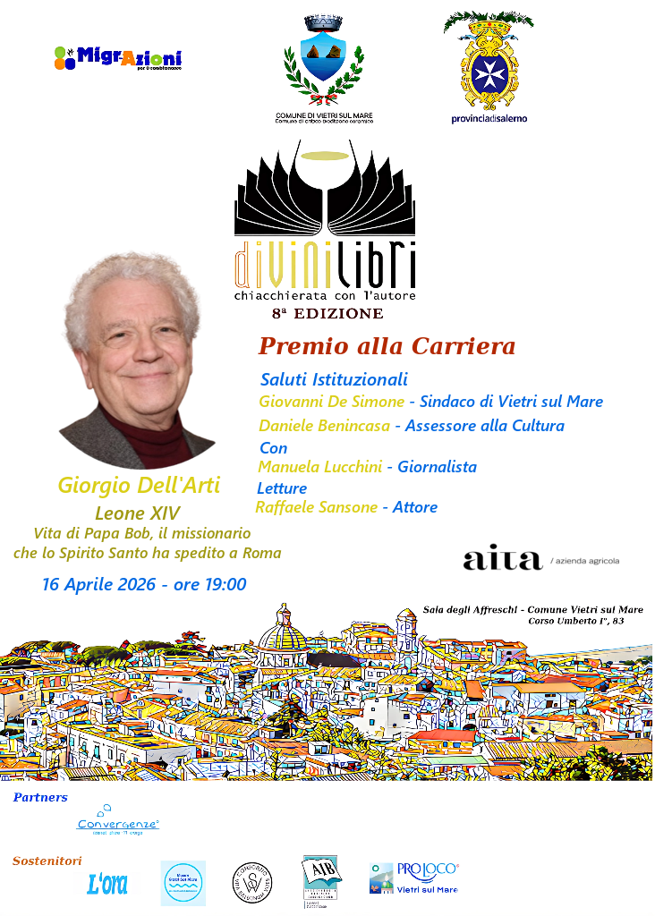 Giovedì 16 aprile alle ore 19:00, la suggestiva Sala degli Affreschi del Comune di Vietri sul Mare farà da cornice a una serata speciale capace di coniugare riflessione, racconto e celebrazione. Protagonista dell’incontro sarà un momento particolarmente significativo: il conferimento del Premio alla Carriera a Giorgio Dell’Arti, figura di spicco del giornalismo e della cultura italiana.