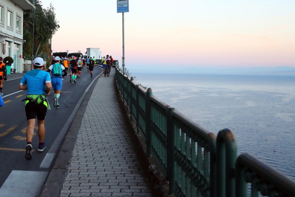 IL PERCORSO – Il via l’1 dicembre alle ore 9 da Corso Italia-Piazza Angelina Lauro, Sorrento. I primi 5 km proseguiranno lungo via Capo e poi lungo Via Nastro Verde con passaggio presumibile tra le 9.20-9.45. Da via Nastro Verde si sale verso Sant’Agata ai due Golfi, la parte più dura del percorso, dove è fissato il passaggio dei 10 km (orario previsto 9.35-10:20). Dal 10°km in poi inizia la discesa lungo Via Nastro D’oro (all’altezza del 15°km) e Via IV Novembre (circa il 20°km). Al km 21,097 c’è il Gran Premio Nastro Verde. A questo punto la strada verso Sorrento continua attraverso Via Partenope e poi nuovamente Via Capo. L’arrivo a Sorrento, passando per l’iconica piazza Tasso con l’albero di Natale e i mercatini, è previsto tra le 10.30 e le 13.00. 27km indimenticabili, fatti di emozioni indescrivibili prima della partenza, musica, energia, impegno, dislivello, panorami mozzafiato, tanti volontari lungo il percorso, felicità totale, accoglienza ed applause ed infine la meritata medaglia. Le iscrizioni sono ancora aperte.