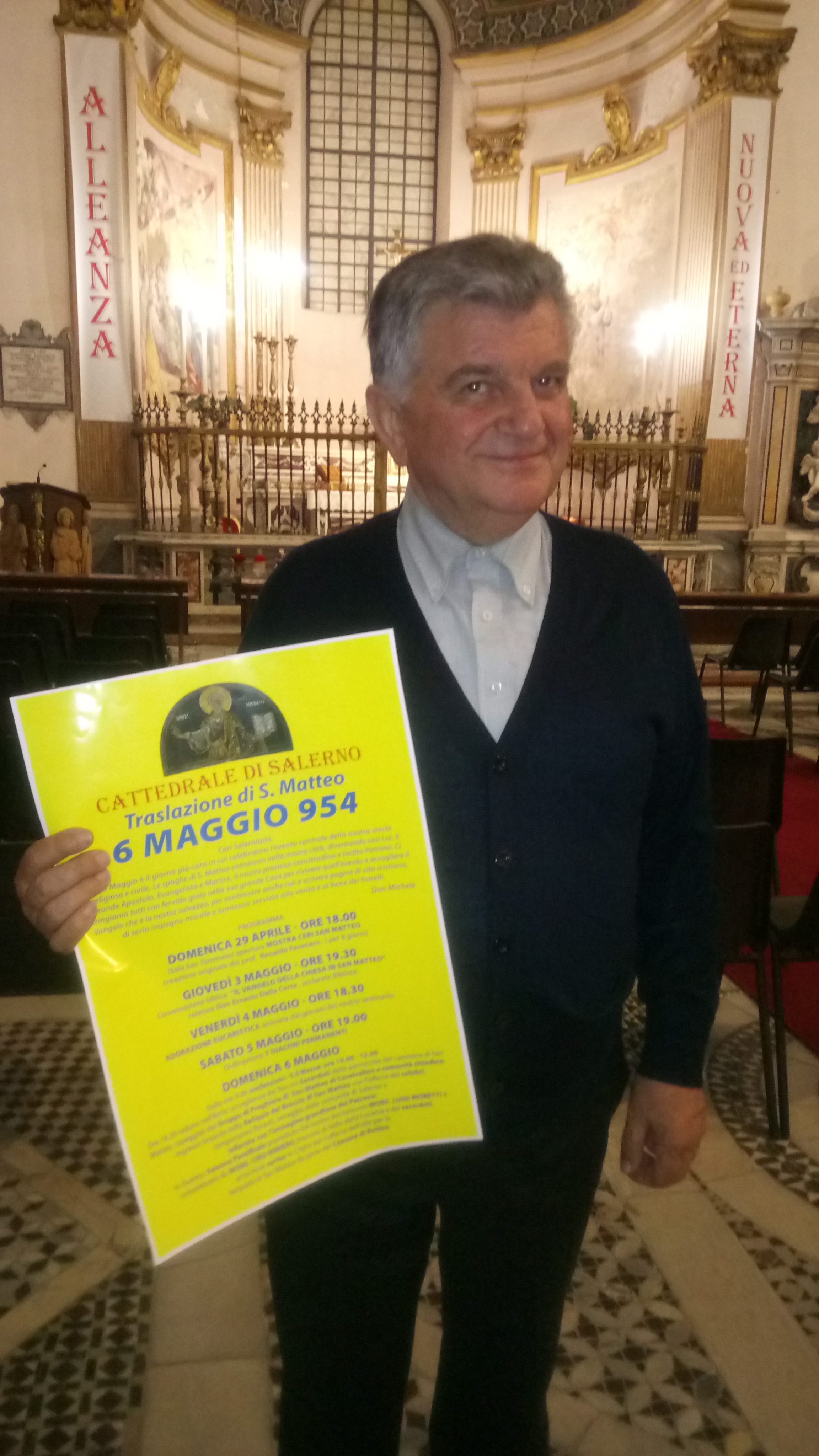 DON MICHELE PECORARAO CON LA LOCANDINA DELL’EVENTO