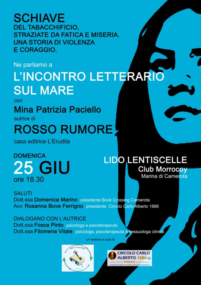 Un nuovo appuntamento con la letteratura, un incontro letterario sul mare, organizzato dall’associazione Book Crossing Camerota e il Circolo Carlo Alberto 1886 di Padula, domenica 25 giugno, alle ore 18:30.