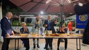 Il presidente Gorgoglione ha presentato il suo Consiglio Direttivo composto da: “Vice Presidente Luigi Della Monica, Prefetto Lucio Pisapia, Tesoriere Francesco Sorrentino, Segretario Fabrizio Budetta. Consiglieri: Maurizio Avagliano, Vilma Ricci, Giuseppe Di Mauro. Past President Ugo Sorrentino. Presidente Incoming Francesco Sorrentino. Il Comitato per i 40 anni del Club, che sarà celebrato il sette maggio, sarà costituito da Luigi Della Monica, Maurizio Avagliano, Alfonso Prisco. Il comitato per il progetto “Le Domeniche della Salute” sarà costituito da Vincenzo Prisco e da altri soci che nomineremo. A curare la comunicazione del Club saranno Gennaro Galdo, Luigi Murante e Noemi Taccarelli che curerà l’immagine pubblica. Le iniziative dedicate alla Rotary Foundation saranno affidate a Mauro Budetta. Le attività di promozione e di sviluppo sul territorio saranno seguite da Maurizio Avagliano e Ciro Senatore”. A portare i saluti e gli auguri del Governatore del “Distretto Rotary 2101”, il dottor Antonio Brando, è stata l’Assistente del Governatore, la dottoressa Marilena Montera, che ha ricordato i valori del Rotary e il motto del Governatore Brando “Camminare Insieme…servire con Gioia, per celebrare la “Magia del Rotary” e dare forma ai sogni”. Il saluto del Past Governor Ugo Oliviero è stato portato dall’Assistente del Governatore, il professor Andrea Di Lieto che ha lodato l’opera svolta dal Club guidato dal presidente Sorrentino durante l’anno rotariano. Un simpatico ed esilarante sketch teatrale, tratto da “La Scommessa” di Eduardo De Filippo, è stato organizzato con la regia del Past President Felice Scermino e interpretato, con bravura ed ironia, dai soci rotariani Lucio Pisapia e Maurizio Avagliano. La colonna sonora della serata è stata affidata al DJ Francesco Pezzuti.