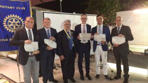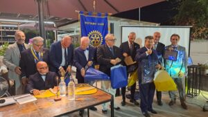 Dopo i saluti del Prefetto, l’avvocato Lucio Pisapia, e la lettura della “Preghiera del Rotariano”, letta da Caterina (Katia) Sannino, l’avvocato Sorrentino, nel rispetto del suo motto dell’anno: “Innovare nella tradizione”, ha ricordato, anche attraverso delle slide proposte dal Past President Fabrizio Budetti, alcuni dei progetti realizzati durante il suo anno di presidenza:” Uno dei progetti più importanti del Club è stato sicuramente quello distrettuale “Le Domeniche della Salute”, ideato dal nostro Club, che quest’anno in otto incontri ha visto la partecipazione di tanti cittadini del territorio che sono stati visitati dai medici rotariani per vari tipi di patologie. Suggestivo e commovente è stato il concerto dello Stabat Mater di Karl Jenkins, a Ravello, nella chiesa di San Giovanni del Toro, organizzato insieme agli altri Club Rotary e alla Corale Metelliana. Molto bella anche la celebrazione alla Badia di Cava organizzata in onore del Beato Gerardo Sasso”. Sorrentino ha sottolineato l’importanza di lavorare in sinergia con gli altri Club Rotary del territorio:” Insieme abbiamo realizzato tanti importanti progetti come quello distrettuale denominato “Hope Garden”, con un investimento distrettuale di ventimila euro, grazie al quale si sta portando a termine la realizzazione di un sistema Agro-Silvo-Pastorale in Burkina Faso, uno dei paesi più poveri al mondo, nel villaggio di Niaogo; il “Progetto rIsCATTo” all’I.C.ATT di Eboli, coordinato dal Formatore Distrettuale Gaetano Pastore, che si è concluso con un emozionante spettacolo teatrale con gli attori che erano gli stessi detenuti che sono stati anche gli autori del testo recitato”. Il presidente Sorrentino ha ricordato anche l’importante incontro sulla Pace, tenutosi presso la Caserma D’Avossa, sede del glorioso 19° Reggimento “Cavalleggeri Guide” e il progetto “Memoria e Solidarietà”, realizzato con gli altri Club Rotary salernitani, che il 9 maggio, in occasione della giornata in memoria delle vittime del terrorismo, ha visto la partecipazione di importanti relatori ad un convegno organizzato all’Università di Salerno e, in serata, l’organizzazione di un concerto di solidarietà al “Teatro Verdi”. L’avvocato Sorrentino ha ringraziato i componenti del Consiglio Direttivo, consegnando loro un’opera in rame dedicata alla “Badia di Cava De’ Tirreni”, realizzata dal Maestro Vittorio Villari, e consegnato una pergamena di ringraziamento ai presidenti dei Club Rotary salernitani definiti “amici speciali”: Enzo Capuano Umberto Maria Cioffi, Sabato Cuozzo, Camillo De Felice, Antonino Sessa, e due Paul Harris, il più ambito riconoscimento del Rotary, ai soci Luigi Murante e Carlo Nardacci.