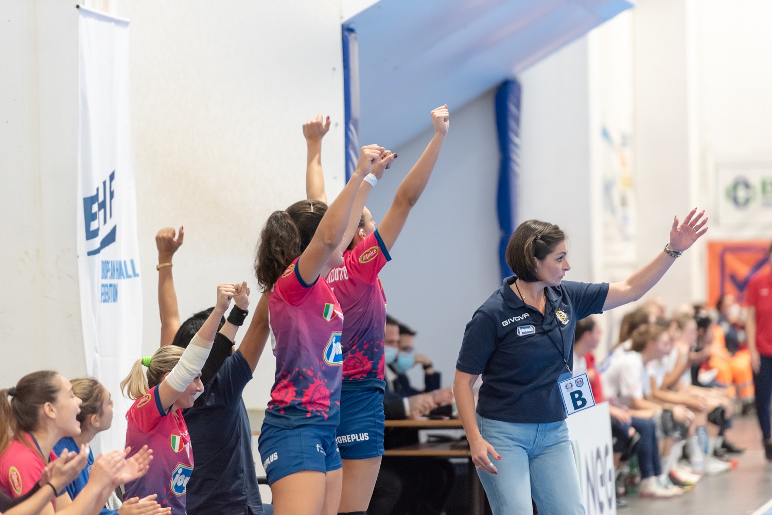La Jomi Salerno vince anche il match di ritorno del Round 2 di EHF European Cup e supera il turno della manifestazione europea. Capitan Napoletano e compagne, dopo la vittoria con il punteggio di 31 – 18, superano ancora le austriache del Roomz Jags Wiener Neustadt con il risultato finale di 31 – 20. La prima rete del match è delle austriache, subito però arriva il pareggio della Jomi Salerno con Manojlovic. Le salernitane allungano sino al 3 – 1, il Roomz riesce però a pareggiare i conti sul 3 – 3 quando il cronometro segna il minuto otto. Sette di coach Laura Avram nuovamente avanti sul 6 – 4 al 13′. Le austriache commettono qualche errore di troppo così la formazione salernitana allunga sul 10 – 6 quando il cronometro segna il 23′. Il primo tempo si chiude con la Jomi Salerno avanti con il risultato di 13 – 7. Ad inizio ripresa arriva un parziale di due reti a zero per le campane che allungano ancora sino al 15 – 7 dopo tre minuti di gioco. Capitan Napoletano e compagne continuano a premere il piede sull’acceleratore raggiungendo il massimo vantaggio al 7′ sul 18 – 8, costringendo il tecnico della formazione austriaca a chiedere il time out. Il team allenato da coach Laura Avram non si ferma ed allunga ancora: al 11′ minuto il risultato è 22 – 9. Al 15′ salernitane che allungano ancora sino al 24 – 12. Il Roomz dal canto suo prova a limitare il passivo, al 23′ il punteggio recita 28 – 14 in favore sempre della Jomi Salerno. Sul finire del match coach Avram concede spazio anche al giovane estremo difensore prodotto della “cantera” targata Pdo Salerno – Scuola di Handball, Martina Ciociano che ricambia la fiducia del tecnico con alcuni interventi degni di nota. Finisce 31 – 20 . È fatta. La Jomi Salerno di coach Laura Avram vola al terzo turno della European Cup.