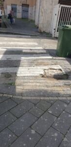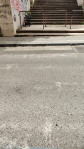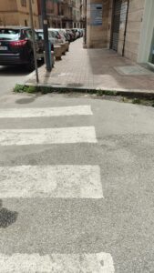 – Marciapiedi non a norma, con scivoli troppo ripidi o assenti e strisce pedonali collegate a gradini alti.