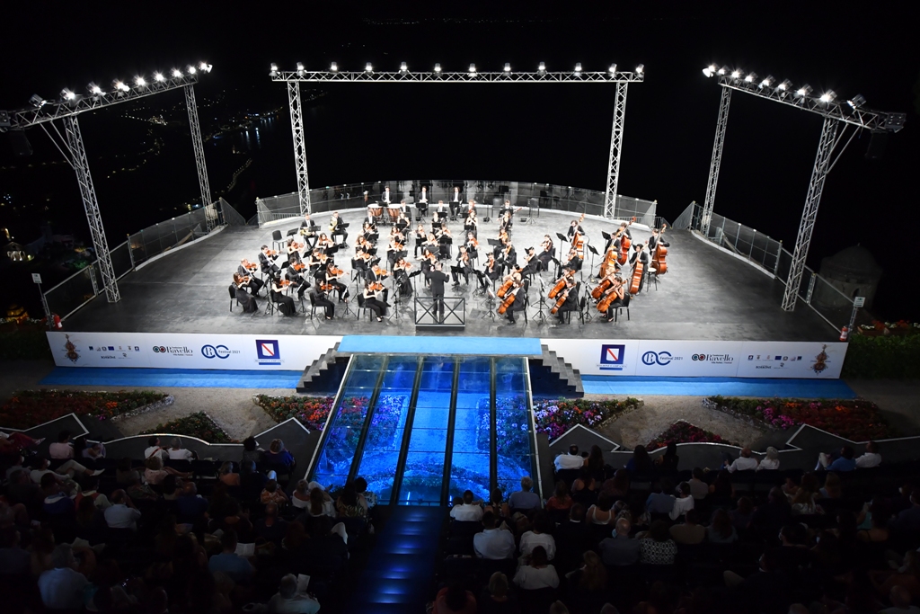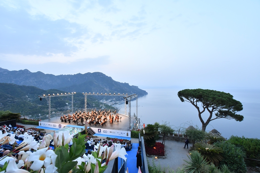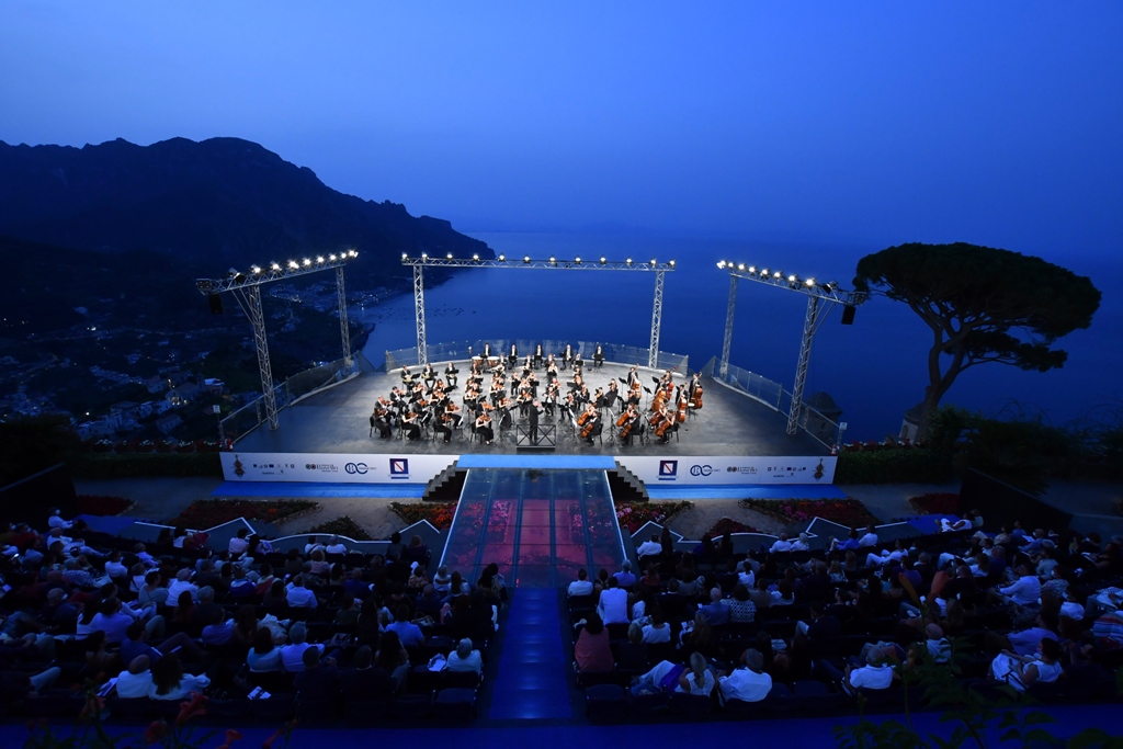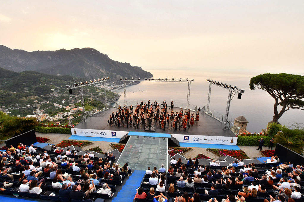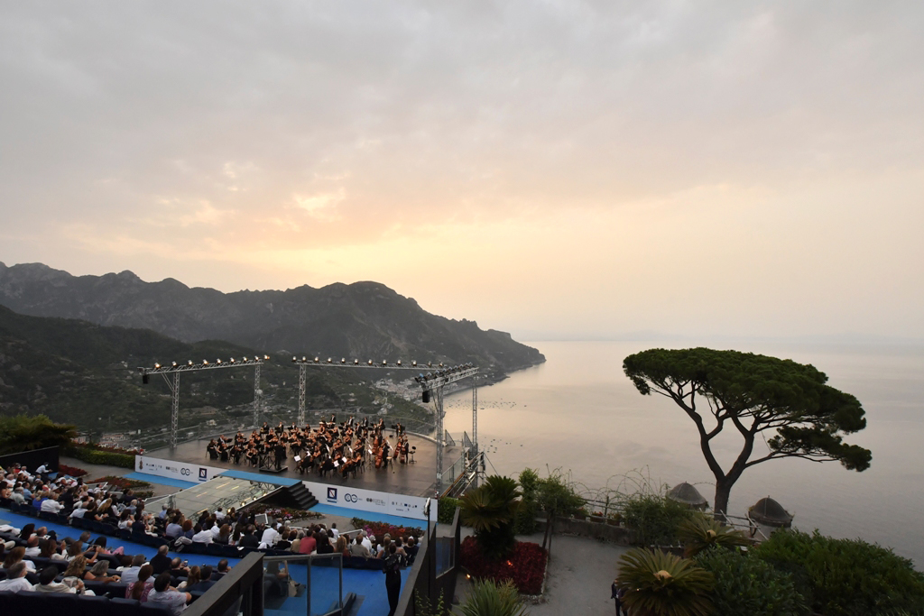 Sul palco del Belvedere di Villa Rufolo l’Orchestra Giovanile Luigi Cherubini, anche questa una scelta non casuale, diretta dal maestro newyorchese, ha eseguito un programma monografico, dedicato al Beethoven delle Sinfonie n.8 e della citata n.6.