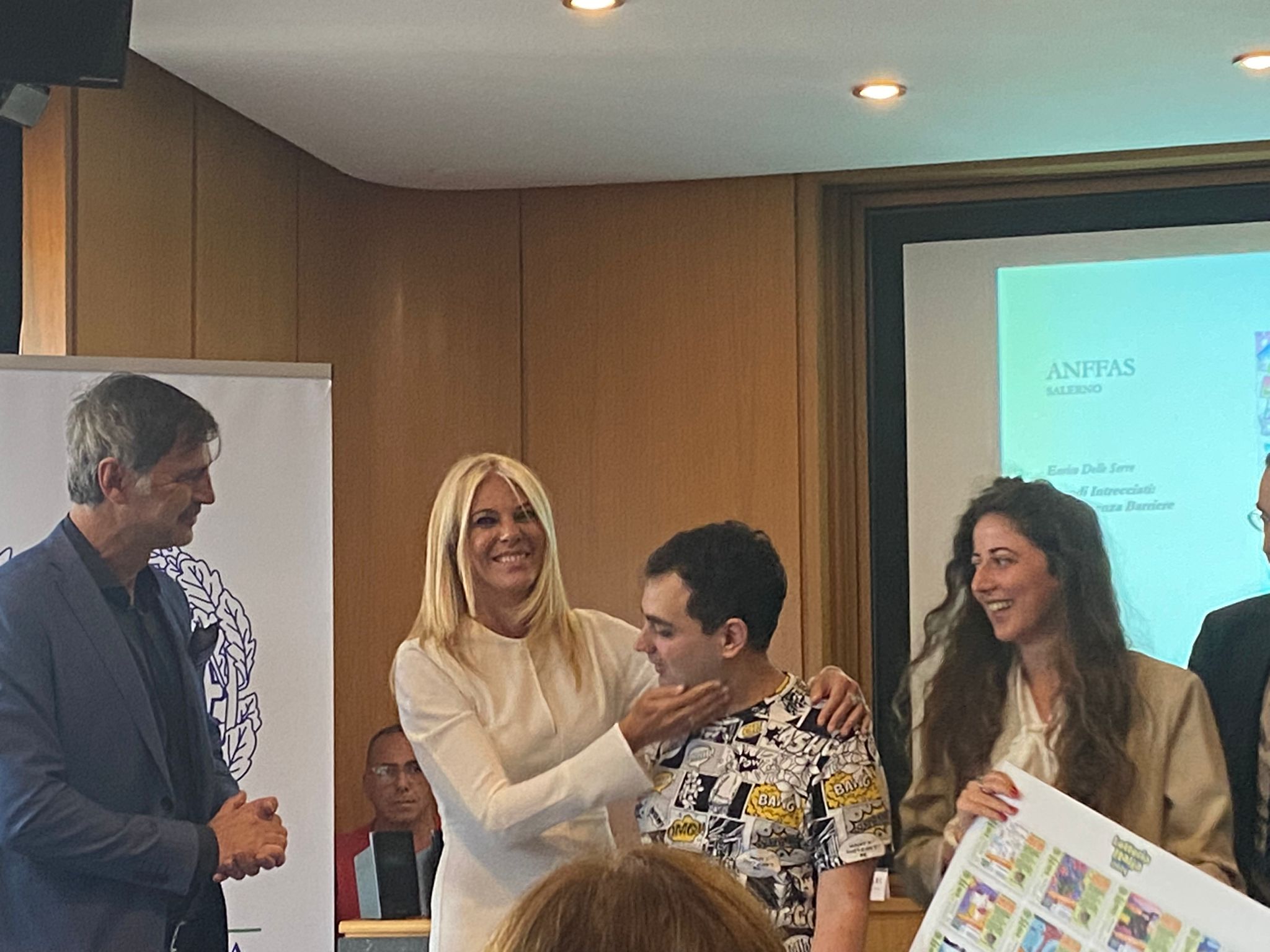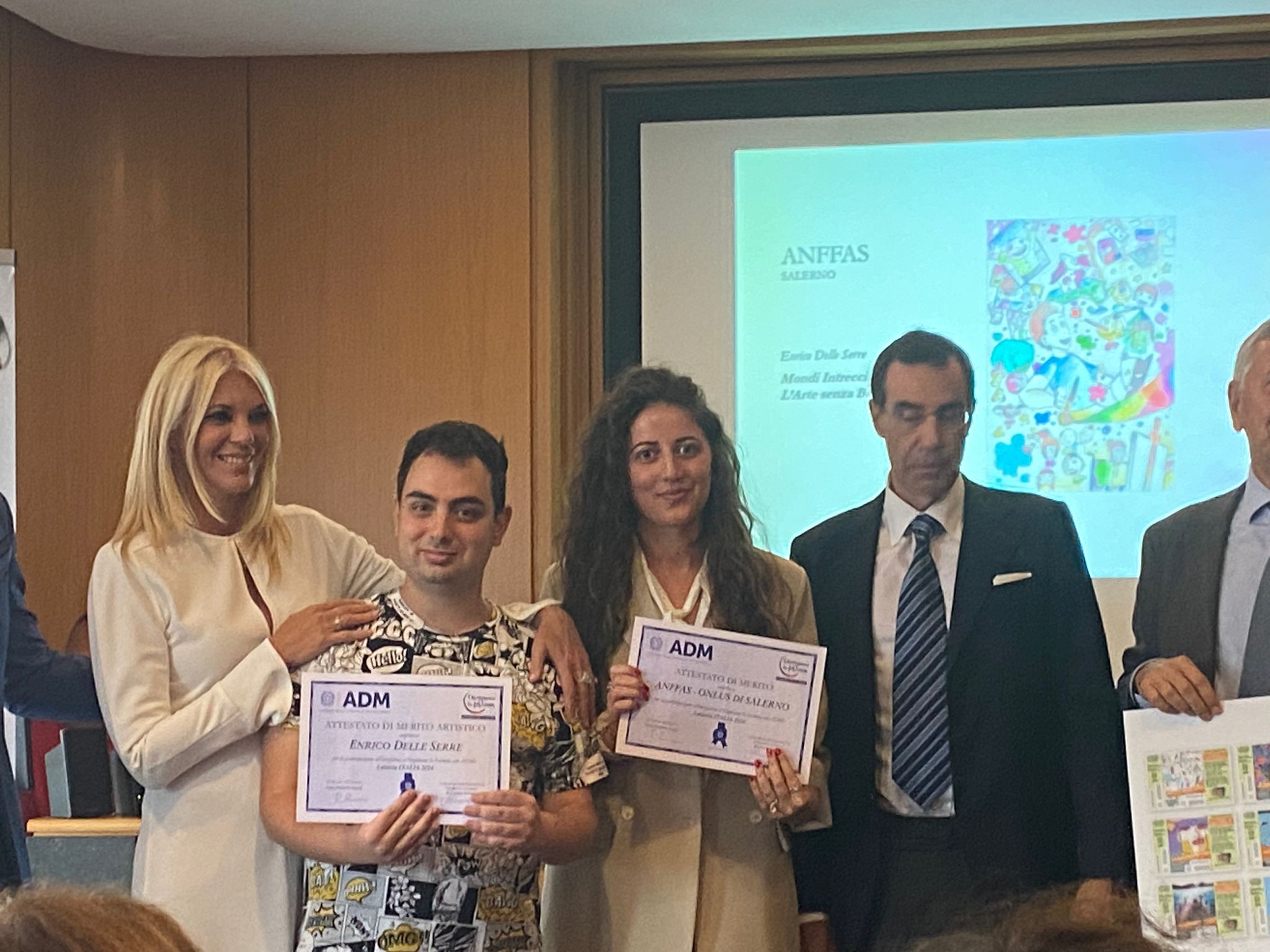 Ieri mattina Enrico Delle Serre ha preso parte alla cerimonia di premiazione del concorso a Roma nella sala delle Conferenze della sede di piazza Mastai. Il direttore dell’Agenzia delle dogane e dei monopoli, consigliere Roberto Alesse, affiancato dalla presidente della commissione di valutazione, Eleonora Daniele, ha consegnato attestati di merito artistico al Portavoce della PIAM (Piattaforma Italiana Autorappresentanti in Movimento) e Leader del Gruppo degli Autorappresentanti di Anffas Salerno, autore del bozzetto selezionato e riconoscimenti agli enti di appartenenza.
