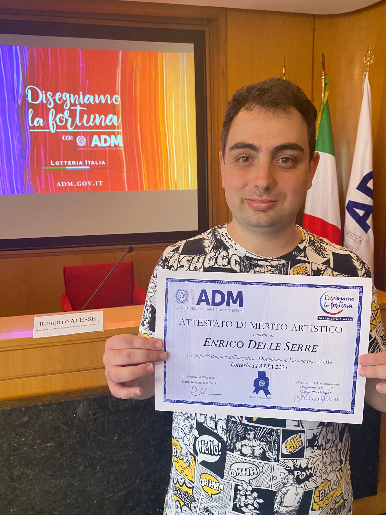“Congratulazioni a Enrico per questo meritatissimo riconoscimento! La sua arte, selezionata ancora una volta, non solo rappresenta il suo talento unico, ma anche la forza di un percorso inclusivo che permette a tutti di esprimere se stessi. Un grande esempio di talento e sensibilità, nonché di come, con il giusto supporto, anche le persone con disabilità possono esprimere il loro immenso potenziale. Siamo orgogliosi di sostenere Enrico nel suo viaggio artistico e ringraziamo l’Agenzia delle dogane e monopoli per l’iniziativa e la sensibilità dimostrata”.