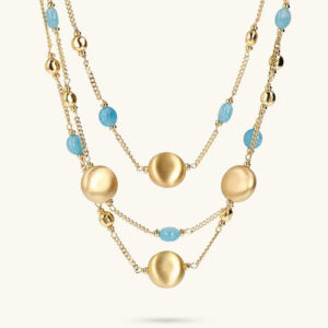 Etrusca Gioielli: “L’unicità è scritta nella materia stessa. Uso solo pietre naturali, come turchese, agata, acquamarina, ciascuna con le sue venature irripetibili. Le forme morbide, i volumi generosi, la finitura luminosa in oro 18 carati: ogni dettaglio è studiato per esaltare la bellezza naturale della donna che sceglie di indossarmi. Sono gioielli che non seguono le mode effimere, ma che raccontano una femminilità autentica, forte e senza tempo.”