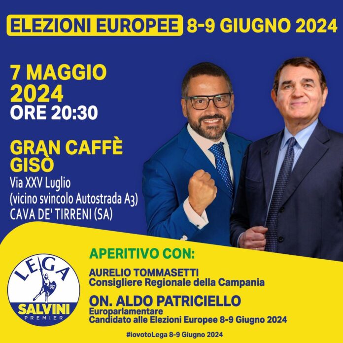Martedì 7 maggio alle 20.30, l’europarlamentare uscente ricandidato nella lista della Lega, insieme al consigliere regionale della Campania, incontreranno i cittadini in occasione di un aperitivo al Salone del Gran Caffè Giso in via XXV luglio, entrando nel dettaglio del programma del partito per le prossime consultazioni. È una tappa importante nel percorso che si concluderà l’8 e 9 giugno con il voto per il rinnovo del Parlamento Europeo.