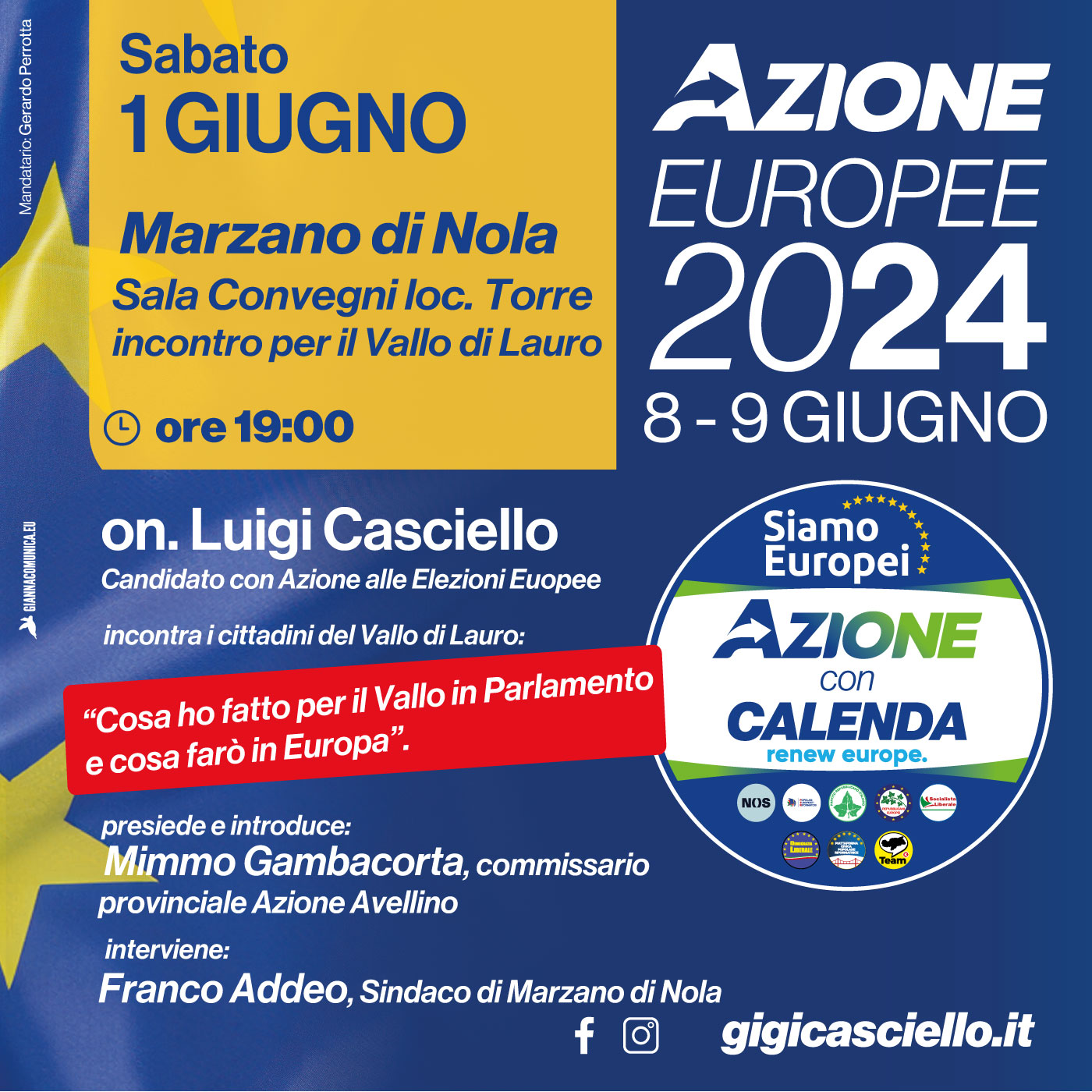Le prossime tappe del Tour Siamo Europei di Azione – il Sud in Europa – per le Elezioni Europee dell’ 8 e 9 giugno con il candidato Luigi Casciello: