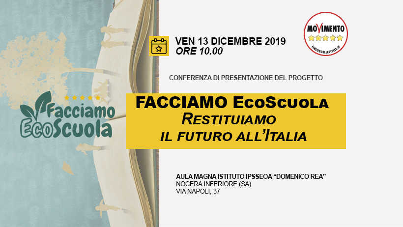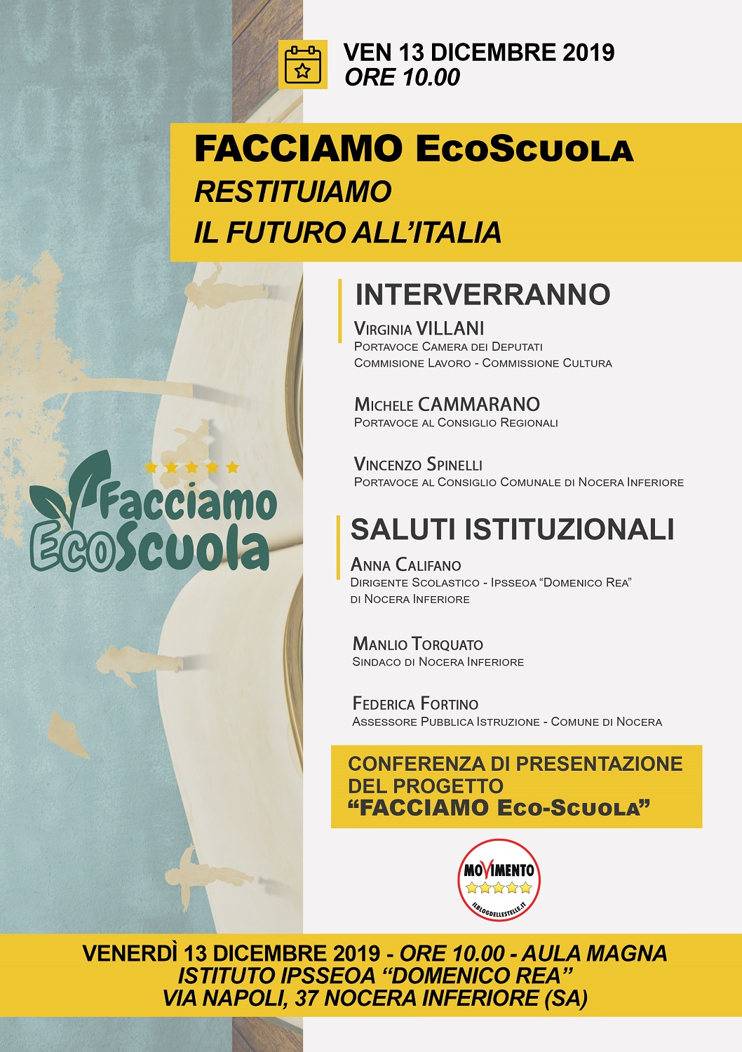 Partita la terza edizione di “Facciamo Scuola”, l’iniziativa promossa dai portavoce del Movimento 5 Stelle. L’iniziativa sarà presentata VENERDI’ 13 DICEMBRE alle ore 10,00 presso l’Aula Magna dell’Ipsseoa “Domenico Rea” di Nocera Inferiore (SA).