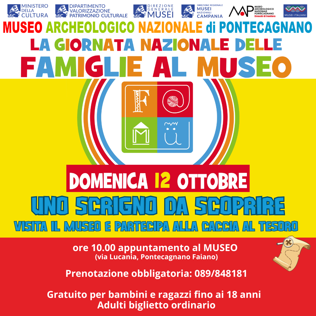 Domenica 12 Ottobre2025 il Museo Archeologico Nazionale di Pontecagnano ‘Gli Etruschi di frontiera’, aderisce alla Giornata Nazionale delle Famiglie al Museo (#FAMU2025) con un programma di attività didattiche per tutta la famiglia dedicate ai temi della scoperta e del gioco educativo.
