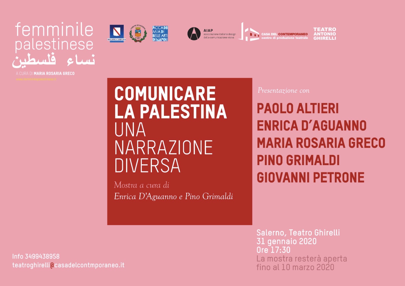 Venerdì 31 gennaio, “Femminile palestinese”, la rassegna curata da Maria Rosaria Greco e promossa dal Centro di produzione teatrale Casa del Contemporaneo, torna al Teatro Ghirelli di Salerno con la Mostra “Comunicare la Palestina, una narrazione diversa” a cura di Pino Grimaldi e Enrica D’Aguanno.