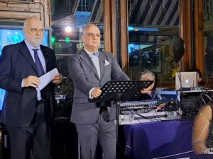 Dopo i saluti del prefetto Alessandro Ruggiero e la lettura della “Preghiera del Rotariano”, letta dalla giovanissima presidente dell’Interact Club Salerno, Benedetta Lombardi, la serata, gestita dal punto di vista tecnico dai componenti della “Bottega San Lazzaro”, ha visto alternarsi momenti di innovazione e di tradizione: le immagini video dei presepi realizzati in tutto il mondo, compreso naturalmente il classico presepe napoletano, hanno preceduto l’emozionante intervento dedicato al Natale di padre Gianfranco Pasquariello , parroco della chiesa di San Leonardo e padre spirituale della “Comunità Emmanuel” di Eboli diretta da Domenico Porcelli, al quale sono stati consegnati i regali per i bambini, figli dei detenuti, donati da tutti i soci, e raccolti dalla Responsabile Distrettuale dell’Interact Patrizia Russo e dalla Past President Rosalia Galano. Non è mancato naturalmente il momento dedicato alla poesia: il Past President Tony Ardito ha recitato una bellissima poesia intitolata “Natale”, scritta dal socio Enzo Todaro tratta dal suo libro “Vorrei ancora”. Il presidente Umberto Maria Cioffi ha tracciato un bilancio dei primi sei mesi di attività dell’anno sociale : “ Abbiamo trattato le nuove tematiche della digitalizzazione, dell’eco digitalizzazione, dell’Intelligenza Artificiale e del 5G. Delle grandi opportunità che offre l’Intelligenza Artificiale, delle sue potenziali implicazioni future e di come possa potenziare le capacità di tutti gli uomini ci ha parlato il professor Luigi Troiano, Associato presso il Dipartimento di Scienze Aziendali – Management & Innovation System dell’Università di Salerno. Di transizione ecologica e digitale abbiamo parlato con il professor Alfonso Pecoraro Scanio, Presidente della Fondazione Uni Verde, Docente di “Turismo e sostenibilità” presso l’Università degli Studi di Milano Bicocca, presso l’Università Tor Vergata di Roma e presso l’Università Federico II di Napoli. Con l’ingegner Nicola Pasquino, Professore Associato di “Misure per la Compatibilità Elettromagnetica”, presso il Dipartimento di Ingegneria Elettrica e delle Tecnologie dell’Informazione presso l’Università di Napoli Federico II, abbiamo parlato di quali sono le applicazioni e i vantaggi della tecnologia 5G, evidenziando i risultati delle ultime ricerche sui campi elettromagneti. Abbiamo avuto un incontro con il professor Enrico Coscioni, nostro socio, Presidente dell’Agenzia Nazionale per i Servizi Sanitari Regionali (AGE.NA.S) e Primario del Dipartimento di Cardiologia dell’Azienda Ospedaliera Ruggi di Salerno, che ha spiegato quali sono le nuove frontiere della sanità e annunciato che l’Italia sarà, a breve, la prima in Europa a dotarsi di un progetto nazionale di telemedicina. C’è stato poi il tradizionale incontro con il Governatore del “Distretto Rotary2101”, il dottor Ugo Oliviero, che ha annunciato che Il 23 marzo sarà organizzato un forum sulla pace a Pompei. Abbiamo avuto un incontro con il professor Valerio Bozza, Associato di Astronomia e Astrofisica presso il Dipartimento di Fisica dell’Università di Salerno, che ha spiegato che ci sono diverse prove dell’esistenza dei buchi neri e quali sono i metodi per trovarli. Nello storico quadriportico di Santa Maria delle Grazie, sede della casa albergo per anziani “Immacolata Concezione” abbiamo trascorso una piacevole serata con il Maestro Salvatore Lombardi, socio del Club, musicista di fama internazionale, definito dalla critica come “l’uomo che dà voce al flauto in Italia” che, accompagnato alla chitarra dal Maestro Piero Viti, ha eseguito brani di Gioacchino Rossini e raccontato la storia e i segreti del flauto traverso”. Durante la serata il dottor Valerio Salvatore, Fiduciario Emerito della “Condotta Slow Food Salerno”, nell’ambito del progetto “In Viaggio nell’Italia del gusto” curato insieme al Past President Rocco Pietrofeso, ha spiegato che gli struffoli della tradizione natalizia sono simbolo di abbondanza e presentato il panettone “San Matteo” realizzato con l’uva sanginella di Giovi, simbolo della “Festa di San Matteo” che negli ultimi anni è stata riproposta da alcuni imprenditori locali. Sono stati presentati tre nuovi soci del Club: l’ingegnere Anna Gallo, Past President del “Rotaract Club Salerno”, presentata dal Formatore Distrettuale Gaetano Pastore; la professoressa Ida Lenza, Dirigente Scolastica dello storico “Liceo Torquato Tasso” di Salerno, presentata dal Past President e già preside Michele Di Filippo, e il direttore della sede di Salerno della “Banca d’Italia”, il dottor Luca Moscadelli, presentato dal socio Vincenzo Maffei. L’Assistente del Governatore Ciro Senatore ha portato i saluti e gli auguri del Governatore del “Distretto Rotary 2101” Ugo Oliviero. La colonna sonora della serata è stata affidata alla giovane cantante pop salernitana Arianna Fortunato che, accompagnata al piano dal giovane rotaractiano Daniele Del Deo del “Rotaract Club Salerno”, presieduto da Natalia Granito, ha cantato i brani classici del Natale.