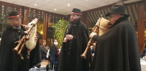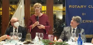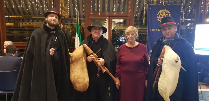 La magica e dolce melodia suonata dagli zampognari della “Compagnia Daltrocanto”, diretta dal Maestro Antonio Giordano, ha avvolto la grande sala del “Circolo Canottieri Irno” di Salerno in occasione della tradizionale “Festa degli Auguri” organizzata dal “Rotary Club Salerno a. f. 1949”, presieduto dalla professoressa Maria Rosaria Lombardi che, dopo la “Preghiera Rotariana” letta dalla Presidente del “Rotaract Club Salerno” Simona Levi, ha ricordato le tante iniziative attivate durante la prima parte dell’anno sociale:” Il nostro Club è stato impegnato nell’organizzare vari incontri culturali e soprattutto a promuovere e redigere ben cinque progetti Distrettuali. a favore del territorio, nei quali sono coinvolti nove Club Rotary e tutti i Club Rotaract e Interact di Salerno: tra questi progetti c’è anche il Progetto Nereus che prevede l’acquisto e l’installazione, nelle acque del Porto di Salerno, di sei impianti Seabin: gli innovativi cestini mangia-rifiuti che galleggiano a pelo d’acqua”. A intonare le note della tradizionale pastorale di Sant’Alfonso Maria de Liguori, sono stati i musicisti Antonio Giordano ed Enzo Gentile, con le loro zampogne, e Rocco Zambrano, con la sua ciaramella, che da oltre vent’anni, insieme agli altri componenti del gruppo musicale, studiano la musica della tradizione popolare del nostro territorio, componendo anche nuovi brani con i testi di Flavio Giordano e gli arrangiamenti del Maestro Bruno Mauro. Il Maestro Giordano crede fortemente nel recupero di melodie del passato: ” Le nostre radici sono importanti ed è necessario tutelare, valorizzare e promuovere il ricco patrimonio di tradizioni musicali, del nostro territorio”. Il musicista salernitano ha raccontato le antiche origini della zampogna:” E’ lo strumento più antico della tradizione italiana. Ebbe origine probabilmente in epoca romana: già l’Imperatore Nerone viene menzionato nella letteratura quale suonatore di uno strumento formato da sole due canne melodiche inserite in un otre di pelle di capra: la Tibia Utricularis. La Zampogna si è diffusa maggiormente in ambito popolare diventando lo strumento dei pastori e della devozione”. I due maestri , Giordano e Gentile hanno usato la classica zampogna di legno di ulivo con l’otre in pelle di capra di tre palmi:” Le zampogne vengono misurate in palmi ,ogni palmo corrisponde a 26,5 centimetri: è una misura introdotta dai Borbone”- ha spiegato Antonio Giordano – “ Queste zampogne sono state realizzate artigianalmente oltre venti anni fa. E’ importante la compattezza dell’otre, che viene gonfiata prima di suonare, e che deve mantenere costante l’intensità del fiato per far avere allo strumento la stessa tonalità del suono”. La provincia di Salerno ha una grande tradizione di zampognari:” In vari Comuni come quelli di Colliano, Caggiano, San Gregorio Magno, Montesano Sulla Marcellana, c’è una grande tradizione di suonatori e costruttori di zampogne. Fin dagli anni ’70 molti zampognari, che venivano nelle nostre case per suonare la novena, provenivano da questi paesi. Oggi sono pochi anche a causa della pandemia”. A portare i saluti del dottor Costantino Astarita, Governatore del Distretto Rotary 2101, è stato l’Assistente del Governatore Ciro Senatore. (Pubblicato su “Il Quotidiano del Sud” edizione di Salerno).