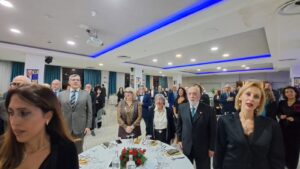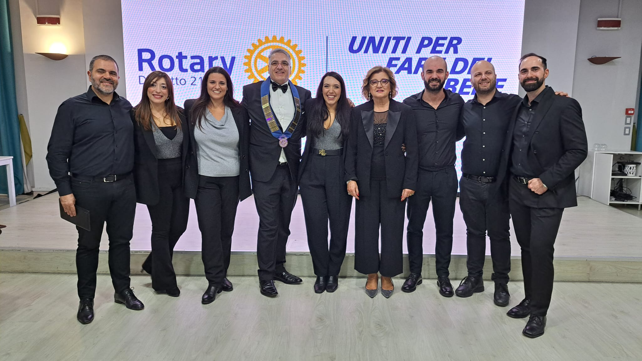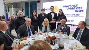 “Natale è stare insieme nell’amore della famiglia e questa sera festeggiamo la famiglia rotariana”. A ricordare il senso del Natale, è stato l’ingegner Ermanno Lambiase, presidente del “Rotary Club Salerno Est”, in occasione della tradizionale “Festa degli Auguri” organizzata all’Hotel Mediterranea di Salerno, iniziata con l’esibizione del “Coro Crescent”: la formazione vocale salernitana diretta dal Maestro   Paola De Maio che, a cappella, senza l’ausilio di alcuno strumento musicale, ha cantato famosi brani pop e rock e i più amati brani classici natalizi. Dopo la lettura della “Preghiera del Rotariano”, letta dal giovanissimo presidente del “Club Interact Salerno”, Francesco Giordano, il Presidente Lambiase ha ricordato alcuni dei progetti realizzati nella prima parte dell’anno sociale:” Nel mese di luglio abbiamo realizzato il progetto  “Una donazione può salvare tre vite!” che, presso lo Stabilimento Balneare Militare di Via Generale Clark, ha visto la partecipazione  degli uomini e delle donne del “ 19° Reggimento Cavalleggeri Guide”, guidati dal Colonnello Nicola Iovino, dei soci e dei cittadini salernitani che, presso l’autoemoteca messa a disposizione dall’Azienda Ospedaliera Ruggi d’Aragona di Salerno, hanno effettuato una donazione di sangue gestita dal personale medico del Reparto di Medicina Trasfusionale diretto dal dottor Ferdinando Annarumma. Abbiamo organizzato, presso il pattinodromo comunale Tullio d’Aragona, sul Lungomare Tafuri, la manifestazione sportiva “Salerno Baskin Day” nel corso della quale ragazzi normodotati e ragazzi diversamente dotati, hanno giocano a basket insieme promuovendo divertimento e integrazione sociale in un contesto di parità. Alla fine del quadrangolare di Baskin abbiamo assegnato il “Primo Trofeo Rotary Club Salerno Est”. Grazie all’Assessore alle Politiche Sociali, Paola De Roberto, stiamo concludendo il progetto di ristrutturazione dei bagni per disabili del Centro Diurno per minori di Mariconda con la collaborazione della “Cooperativa Girasole”. È partito anche il progetto de “Le Domeniche della Salute”, presso il “Villaggio del Benessere” a Matierno. Prosegue la raccolta di generi alimentari e il progetto “Mare Nostrum”, ideato e curato dalla socia innerina Marianna Bortone Blasi. Continueremo il progetto “Una Mano Vela Diamo” e il progetto in Kenya curato dalla socia Rossella Cirillo, Dirigente Medico del Reparto di Ortotraumatologia del Ruggi. Abbiamo anche organizzato, in collaborazione con il “Rotaract Club Salerno Est”, presieduto da Giovanna Morea, e con l’associazione musicale “Sergej Rachmaninov”, presieduta dal dottor Tiziano Citro, il concerto del Maestro Lucio Grimaldi che al pianoforte, illuminato solo dalla luce di trecento candele, ha eseguito alcune delle più belle colonne sonore del Maestro Ennio Morricone”. Il Cavaliere Tony Ardito, Assistente del Governatore Angelo Di Rienzo, ha ricordato l’incontro con il Presidente Internazionale Francesco Arezzo al “Teatro San Carlo” di Napoli dove si è tenuto il concerto del coro polifonico del Teatro a favore della Rotary Foundation. Durante la serata sono stati distribuiti da Emanuele e Maria Rosa Lambiase i doni in ceramica realizzati dai soci Raffaella e Carmine Nobile; l’annuario del Club, realizzato dal socio Riccardo Ciciriello e il libro “Monasteri Urbani della Salerno altomedievale” scritto dall’archeologo Luca Borsa.