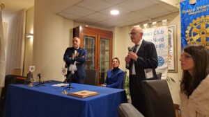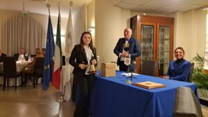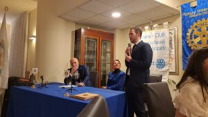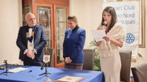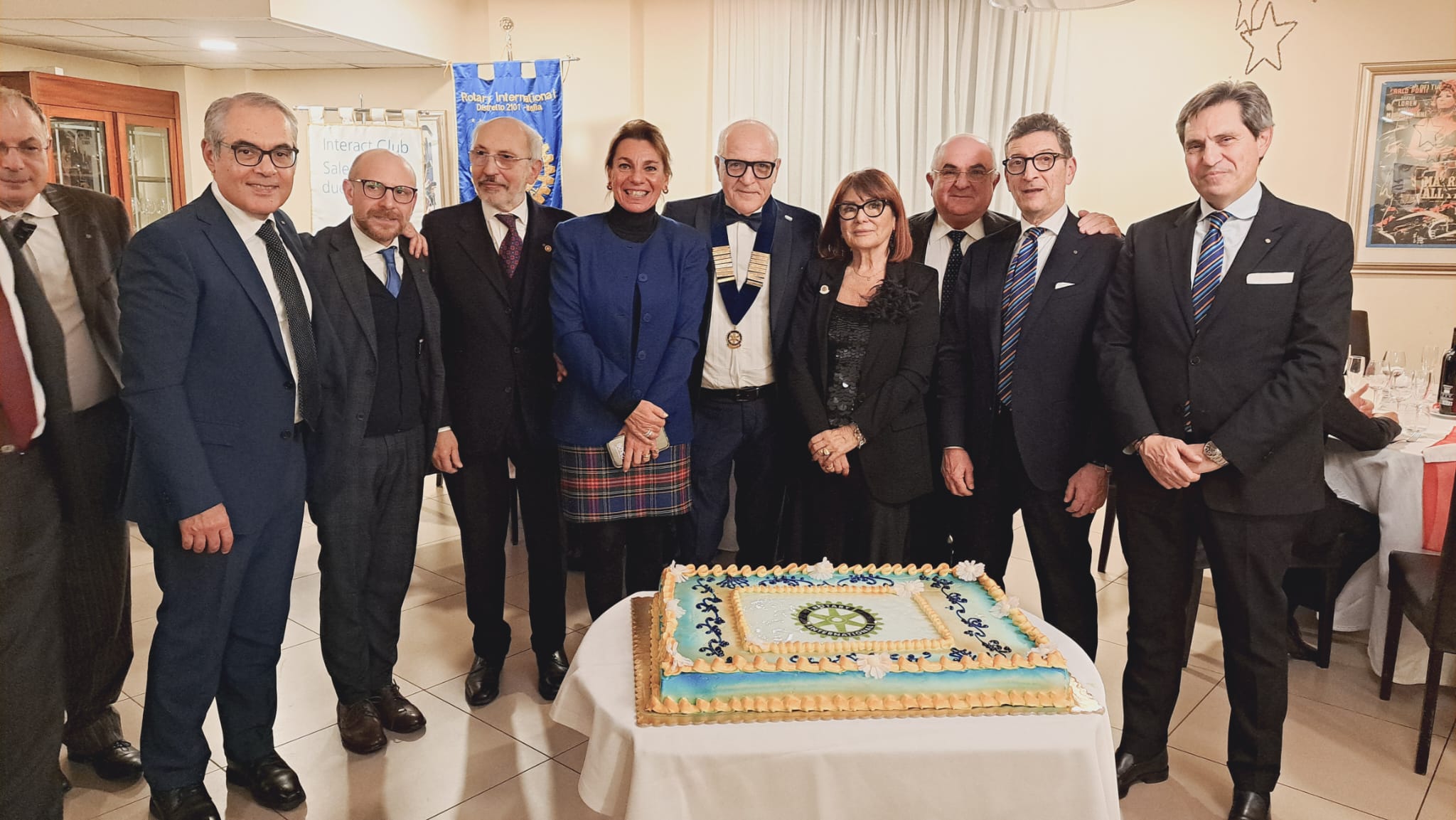 Dopo la benedizione di Don Aniello Del Regno, parroco della Chiesa dei Santi Martino e Quirico di Lancusi, e la lettura della “Preghiera del Rotariano”, letta dalla professoressa Valentina De Caro, il presidente Lucio De Caro, ha ricordato i valori del Natale:” L’amore, la solidarietà e la generosità” e tracciato un bilancio dei primi sei mesi di attività del Club:” Stiamo proseguendo il progetto delle “Domeniche in Salute” che prevede visite gratuite, per varie patologie, effettuate dai medici rotariani a favore delle persone indigenti del territorio. Stiamo attivando un angolo lettura presso l’Azienda Ospedaliera Ruggi di Salerno ed altri progetti con le amministrazioni comunali di Fisciano e Baronissi. Con gli altri Club Rotary stiamo portando avanti il progetto distrettuale, “Valorizziamo i luoghi della Scuola Medica Salernitana” con il coinvolgimento degli studenti del Liceo Artistico “Sabatini – Menna”, che stanno realizzando cinque busti in bronzo e ceramica, raffiguranti i Magister della “Scuola Medica Salernitana” che saranno posizionati nei luoghi simbolo di questa antica Scuola”. Sono intervenuti per un saluto il presidente del “Rotaract Club Campus Salerno Nord dei Due Principati”, Mariano Melchionda, e la presidente del “Club Interact Salerno Nord dei Due Principati”, Giulia De Leo, che ha ricevuto dal presidente Lucio De Caro la nuova campana donata da tutti soci del “Rotary Nord” al sodalizio dei giovanissimi del Rotary. La Formatrice Distrettuale Laura Giordano ha dedicato un pensiero a tutti soci rotariani:” Anche a quelli che per diversi motivi sono rimasti un po’ indietro. Bisogna cercare di non lasciare nessuno indietro. Noi siamo una famiglia, sempre, e tutti insieme siamo una forza”. Il Consigliere Distrettuale Vincenzo Capuano ha presentato il progetto distrettuale ” Il giocattolo sospeso” che si svolgerà il 4 gennaio 2025, alle ore 20.30 , presso la sede del Banco Alimentare di Fisciano:” Il Governatore del “Distretto Rotary 2101”, Antonio Brando, insieme al Governatore del “Distretto Lions 108YA” Tommaso Di Napoli, ha fortemente voluto organizzare, in collaborazione con il “Banco Alimentare” e con la “Lego” una serata di raccolta fondi per comprare dei giocattoli ai bambini ricoverati in Ospedale” . La serata è proseguita con una simpatica tombolata chiamata dal Vice Presidente del Club, Corrado di Gaeta, dal Prefetto del Club Interact Francesco Forestiero e dal Prefetto del Rotary Nord, Luca Tepedino, che ha presentato gli ospiti della serata, i presidenti dei Club Rotary di Salerno: Rino D’Alessio (Rotary Salerno), Eduardo Grimaldi (Rotary Salerno Duomo), Raffaele Brescia Morra (Rotary Salerno Picentia), Edoardo Ventura (Rotary Salerno Est) e la presidente del Club Inner Wheel Salerno Carf, Daniela Vessa Pezzuto.