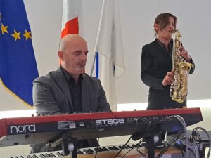“A tutti voi auguro un Natale con pochi regali ma con tutti gli ideali realizzati”. Sono i versi della poesia di Alda Merini: “Buon Natale”, recitati dal dottor Vincenzo Capuano, Presidente del “Rotary Club Salerno Picentia”, in occasione della tradizionale “Festa degli Auguri” organizzata all’Hotel Mediterranea di Salerno, iniziata con le note del sax alto di Carla Marciano che, accompagnata al piano da Alessandro La Corte, ha eseguito, con grande virtuosismo, straordinari brani jazz. Considerata tra i migliori talenti del jazz internazionale, Carla Marciano, annoverata tra i principali specialisti al mondo del sassofono sopranino, ha interpretato alcune ballads di sua composizione come “Fare Away” e “Inside”; la rivisitazione della colonna sonora di “Taxi Driver” e un brano che sarà inserito nel nuovo disco “Daydreaming”, dedicato al padre Giovanni, suonato con grande sensibilità e dolcezza. Naturalmente non poteva mancare un tradizionale e antico canto natalizio inglese: “God Rest You Merry, Gentlemen” (traducibile come “Dio vi renda felici, Signori”) riadattato in chiave jazzistica, con al piano Alessandro La Corte che ha partecipato, come coautore, alle musiche del film di Paola Cortellesi “C’era ancora domani”.