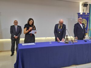 Dopo i saluti del segretario del Club rotariano, l’avvocato Raffaele Tesauro, e la lettura della “Preghiera del Rotariano”, letta dalla consorte del presidente, la dottoressa Carmen De Rosa Capuano, il dottor Vincenzo Capuano ha tracciato un bilancio delle attività intraprese nella prima parte dell’anno sociale:” Abbiamo avviato il progetto distrettuale “Op garden Burkina Faso” che prevede un investimento distrettuale di ventimila euro per la realizzazione di un sistema Agro-Silvo-Pastorale in Burkina Faso, caratterizzato dall’integrazione degli alberi con la produzione di foraggio e bestiame. Tale sistema ha il potenziale di aumentare sensibilmente la produzione agricola sul lungo periodo. In una vasta area recintata installeremo una grande cisterna di acqua, pianteremo una notevole quantità di alberi, avvieremo una coltivazione di verdure e un allevamento di animali. Già in passato in Burkina Faso abbiamo costruito un’infermeria e un pozzo per la gente di quel territorio, che va a prendere l’acqua a oltre 15 chilometri da casa. In collaborazione con il Magistrato Minorile Antonella Troisi, Giudice presso il Tribunale per i Minorenni di Salerno, e con gli altri Club Rotary cittadini abbiamo iniziato un percorso per far conoscere il problema dell’adozione attraverso la presentazione, nel mese di settembre, di uno spettacolo teatrale intitolato “Voci dall’universo minorile”, organizzato presso la chiesa di Sant’Eustachio di Salerno, che replicheremo il quattro gennaio a Battipaglia. Abbiamo raccontato ciò che accade in un Tribunale per i Minorenni attraverso delle scene di vita raccontate dagli stessi ragazzi che le hanno vissute direttamente, con la speranza che questo problema venga conosciuto maggiormente. Insieme agli altri Club Rotary stiamo portando avanti tanti progetti come quello che realizzeremo presso l’ICATT, l’Istituto a Custodia Attenuata, di Eboli, coordinato dal Formatore Distrettuale Gaetano Pastore, che prevede anche uno spettacolo teatrale per preparare il quale i detenuti dovranno acquisire determinate professionalità che successivamente, una volta scontata la loro pena detentiva, serviranno per inserirsi nel mondo del lavoro”. Il presidente Capuano ha ricordato anche gli incontri organizzati durante l’anno come quello con il Generale Luigi Chiapperini, Generale di corpo d’armata dei lagunari in quiescenza, che ha svelato le verità e le menzogne nelle guerre di oggi:” Chiapperini ha sottolineato l’importanza della comunicazione e di come questa possa essere utilizzata per contribuire all’evoluzione di una guerra, anche fornendo una verità distorta dagli attori principali dei conflitti per fornire una narrazione all’opinione pubblica che vada a loro favore”. Il presidente Capuano ha ricordato l’incontro con il Governatore del “Distretto Rotary 2101”, il dottor Ugo Oliviero, che, nel suo intervento sottolineò l’importanza dell’azione umanitaria.” Contraddistingue l’azione rotariana: delle sette aree di servizio del Rotary International, la prima è dedicata alla Pace”. Oliviero annunciò che il 23 marzo a Pompei sarà organizzato, dal “Distretto Rotary 2101” un importante convegno sulla Pace:” Sarà intitolato” Prima di Tutto la Pace” e sarà organizzato nella Basilica di Pompei la cui facciata, che guarda alla piazza, è dedicata alla Pace Universale”. Tanti altri sono stati gli incontri organizzati: quello intitolato “Il Rotary in cammino” con l’interessante intervento del dottor Antonio Brando, Governatore Incoming del “Distretto Rotary 2101” che indicò quelle che saranno le linee di azione che orienteranno il cammino futuro del Rotary; l’incontro intitolato “I nostri parenti Americani” con la relazione sul fenomeno migratorio degli italiani nel mondo tenuta dal giornalista e scrittore rotariano Giuseppe Geppino D’Amico, Past President del “Rotary Club di Sala Consilina e Vallo di Diano” e Formatore Distrettuale; l’incontro con l’ingegner Wolfgang Simonis, esperto in tecnologia ceramica, che ha raccontò la storia delle celebri ceramiche Ernestine. L’artista Pietro Lista, che sta preparando una mostra al “Museo Madre” di Napoli, ha donato ai presenti alcune sue litografie che sono state consegnate dalla dottoressa Carmen Capuano De Rosa e dal Prefetto, la dottoressa Carla Sabatella. L’Assistente del Governatore Tony Ardito ha portato i saluti del Governatore Ugo Oliviero e ricordato le parole di San Giovanni della Croce:” “Per giungere a ciò che non sei, devi passare per dove ora non sei. Per giungere al possesso del tutto, non voler possedere niente”.