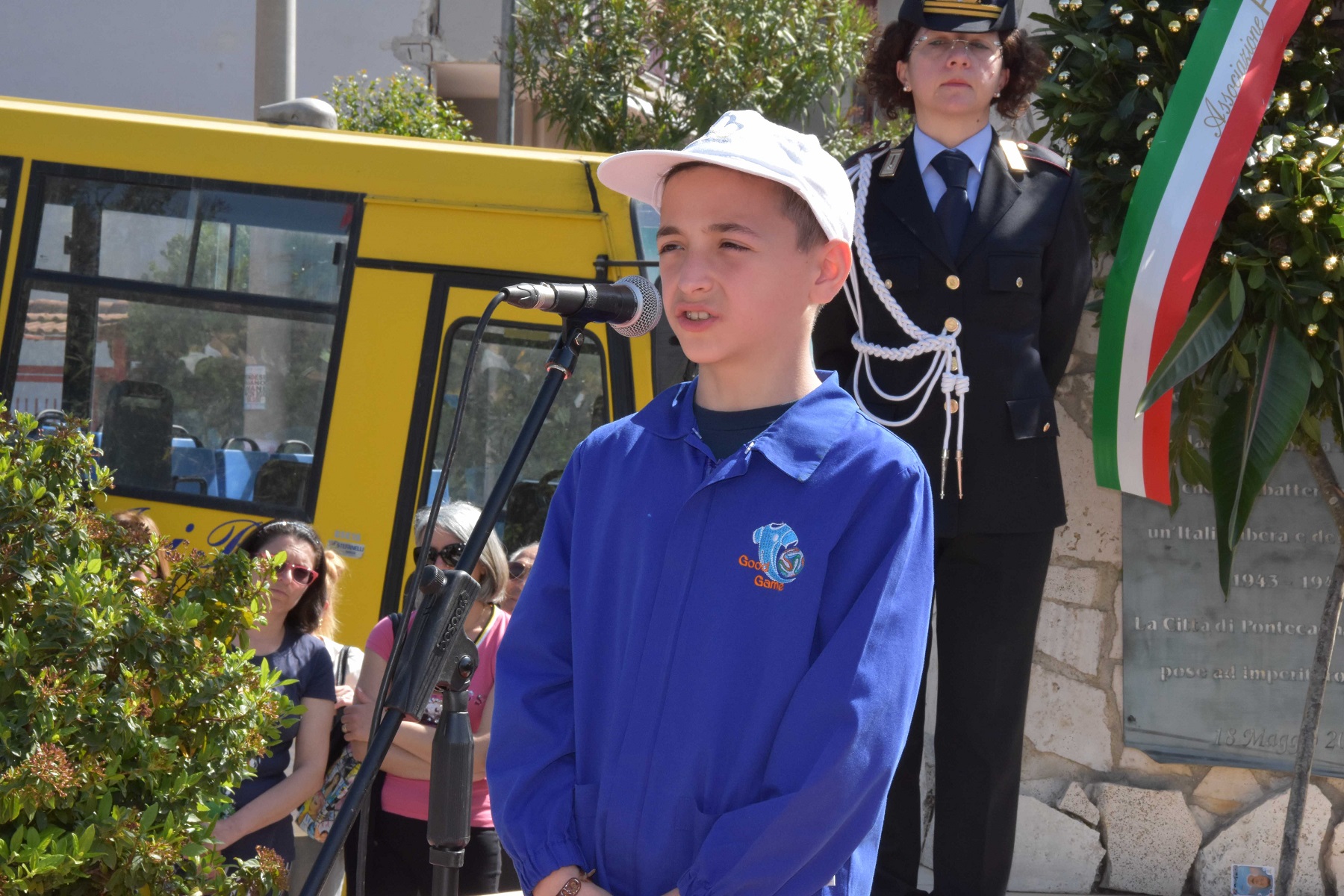 In apertura i ringraziamenti da parte dell’Amministrazione: all’onorevole Marzia Ferraioli, presente alla cerimonia; al cavaliere Vincenzo Marrazzo, Presidente della locale Associazione Nazionale Combattenti Guerra di Liberazione; al Coordinamento provinciale di Salerno dell’Anpi presieduto da Luigi Giannattasio; all’Associazione Amici del Tricolore presieduta da Antonio Galdi; alla sezione Bersaglieri di Salerno presieduta dall’avvocato Antonio Di Chiara; ai Dirigenti scolastici Sergio Di Martino, Ginevra de Majo e Angelina Malangone; al maggiore Andrea Sarica, Comandante del 7° Nucleo Elicotteri Carabinieri di stanza a Pontecagnano; al maggiore Erich Fasolino, Comandante della Compagnia Carabinieri Battipaglia; al maresciallo Vincenzo De Chiara, Comandante della Stazione Carabinieri Pontecagnano Faiano; al capitano Roberto Mandorino del reggimento Cavalleggeri Guide Salerno; al capitano Giuseppe Libonati del Comando Comprensorio Persano.