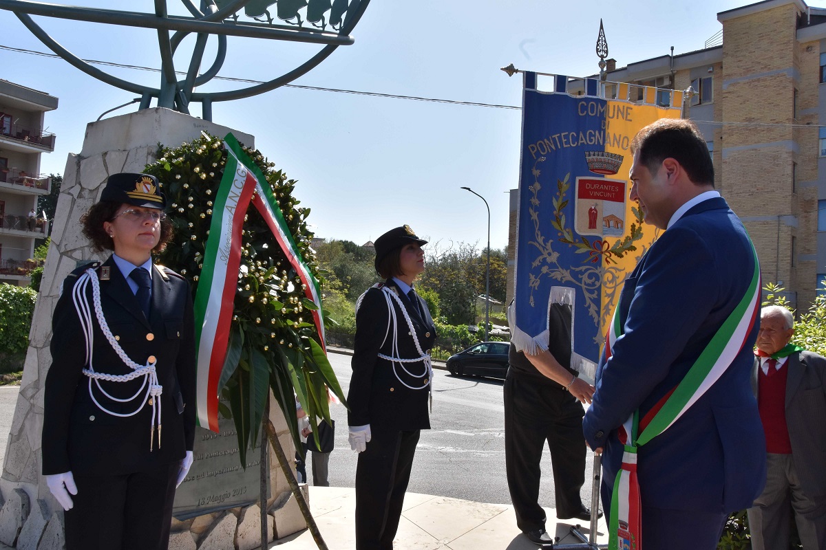 A seguire la deposizione della corona di alloro dinanzi al monumento eretto in onore dei Caduti del Corpo Italiano di Liberazione, della V Armata Americana e della VIII Armata Britannica.