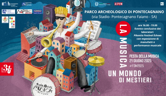 Nel suggestivo scenario del Parco archeologico di Pontecagnano si terrà l’evento conclusivo dei laboratori del Pikentia Echoes Festival, a cura dell’Associazione O. d. C. Officina di Consapevolezza, con il sostegno del Comune di Pontecagnano Faiano, dedicato proprio alla musica.
