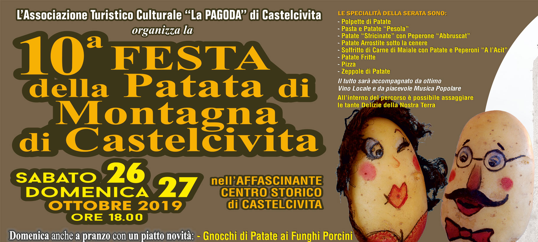 Tante le specialità: polpette di patate, pasta e patate “pesola”, patate “striscinate” con peperone “abbruscat”, patate arrostite sotto la cenere, soffritto di carne di maiale con patate e peperoni all’aceto, patate fritte, zeppole di patate.“