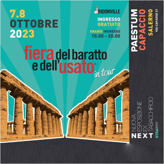 A grande richiesta, dopo il successo della prima edizione, torna il 7-8 ottobre “LA FIERA DEL BARATTO E DELL’USATO in TOUR” nella bellissima cornice del Next, ex Tabacchificio di Capaccio-Paestum.