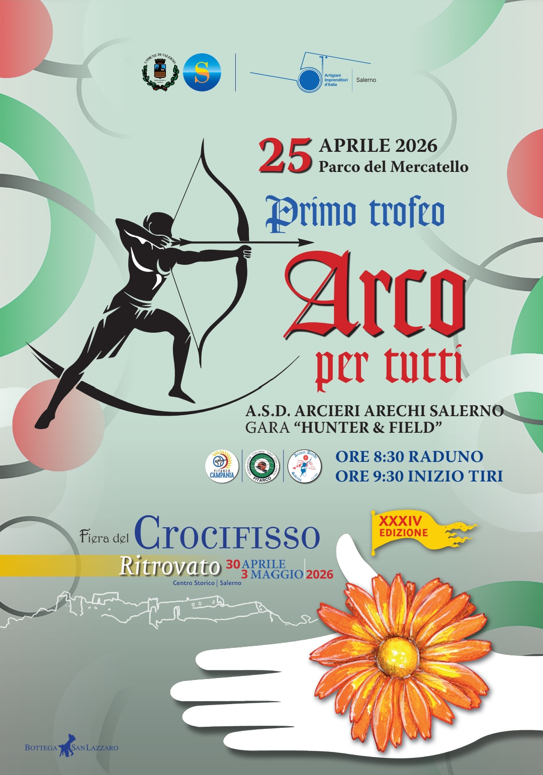 La XXXIV Fiera del Crocifisso Ritrovato, che si svolgerà nelle strade, nei vicoli e nelle piazze del Centro storico di Salerno da giovedì 30 aprile a domenica 3 maggio 2026, avrà un’anteprima il 25 aprile al Parco Mercatello di Salerno con il primo torneo nazionale del Crocifisso “Arco per tutti”.