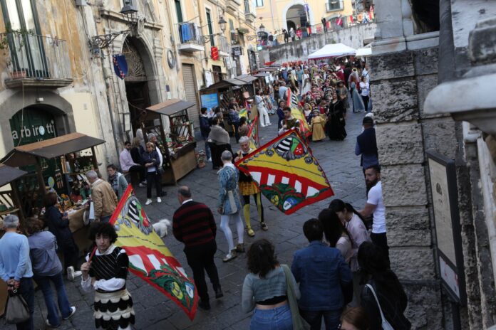 In particolare queste ultime, valorizzando l’artigianato con l’hand made, sembravano quanto mai coerenti con la Fiera, estendendo idealmente quanto realizzato dalla Cna in piazza Sant’Agostino”. Dello stesso avviso il Direttore Creativo della Fiera del Crocifisso, Gianluca Foresi, che mette in evidenza il successo della formula degli approfondimenti culturali: “Negli spazi dell’Arco Catalano, le immagini di ogni appuntamento sono eloquenti, abbiamo avuto sempre il pienone. Desideriamo far crescere sempre più gli spazi di approfondimento storico e culturale sul periodo aureo del Mezzogiorno d’Italia”. Foresi, che ha un’esperienza nel settore mette in evidenza le peculiarità della Fiera salernitana rispetto ad altre realtà: “Altrove è più semplice costruire eventi in piccoli borghi medievali. Salerno ha un grande centro storico e si è riusciti a raccoglierlo dentro gli eventi della Fiera, offrendo un itinerario lungo e variegato”. Non a caso, la manifestazione, organizzata dalla Bottega San Lazzaro, è stata riconosciuta dal Ministero della Cultura tra le rievocazioni storiche di interesse nazionale. A sostenerla: Comune di Salerno, Camera di Commercio di Salerno, CNA, Regione Campania, Provincia di Salerno, Ministero della Cultura, Coldiretti, Fondazione della Comunità Salernitana, Fondazione Carisal e Fondazione Scuola Medica Salernitana.