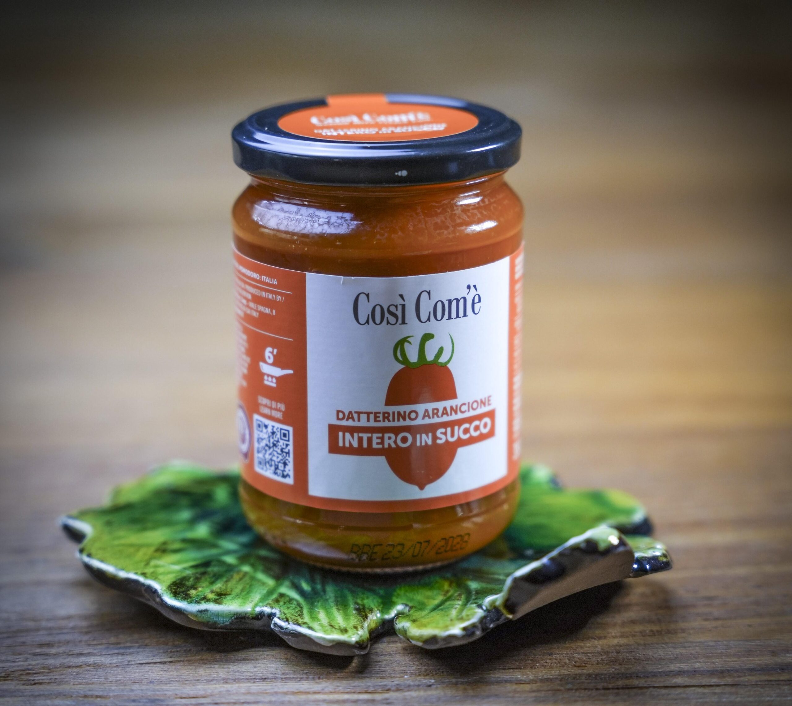 Ancora novità dal quartier generale di Finagricola, azienda innovativa e sempre impegnata nella sperimentazione, con il suo marchio di punta “Così Com’è”, noto ai consumatori soprattutto per la diffusione sul mercato del “datterino giallo”, già a partire dagli anni 2000. Oggi l’azienda rilancia con una novità assoluta: la trasformazione in conserva del datterino arancione, nella versione “intera in succo”.