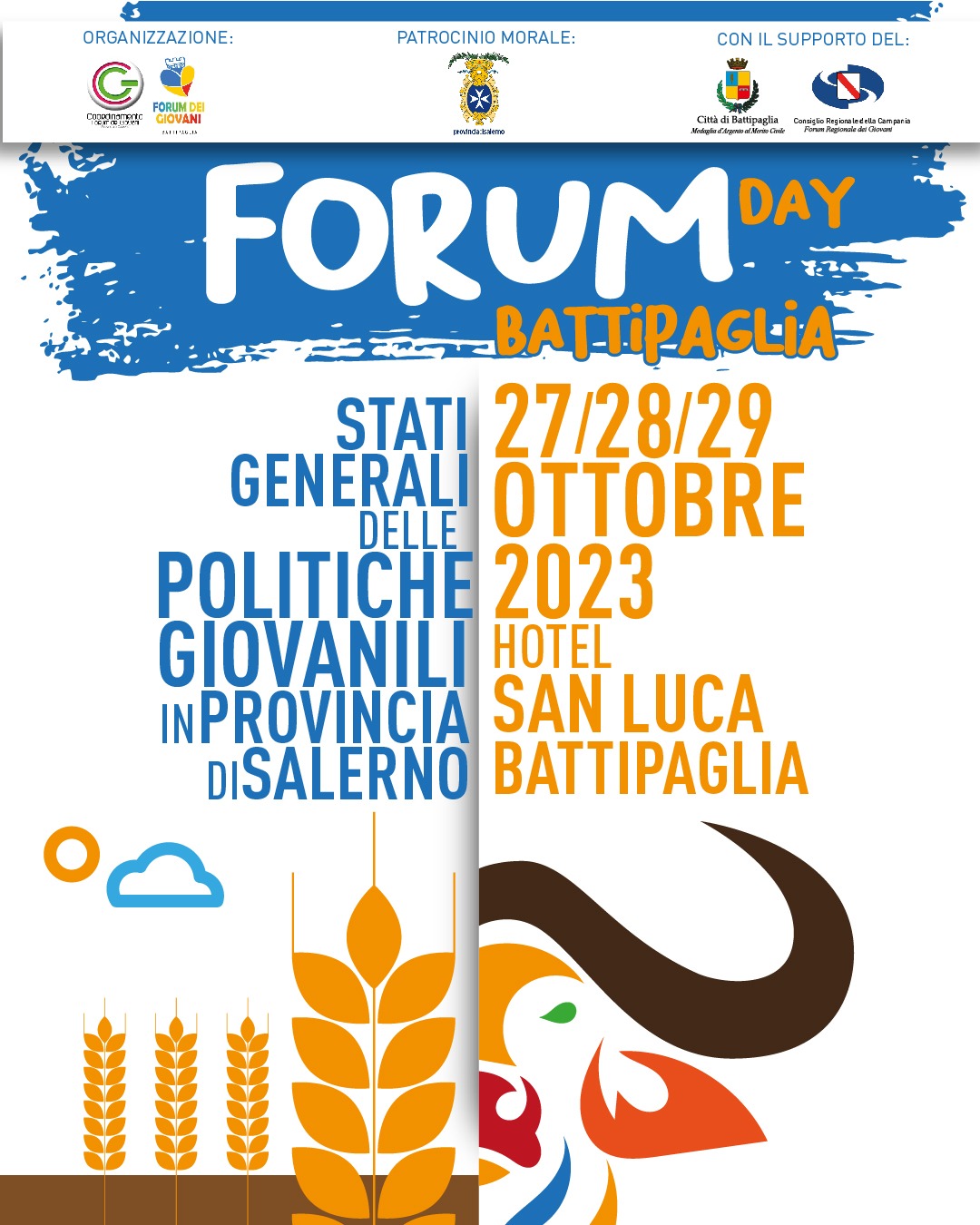 Arriva anche quest’anno l’Evento “Forum Day 2023 – Stati Generali delle Politiche Giovanili in Provincia di Salerno”.