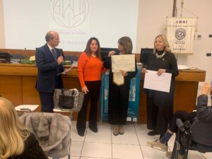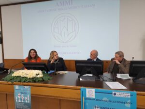La presidente onoraria dell’AMMI, Nietta Carucci Penta, ha consegnato alla dottoressa Ornella Orlando, un attestato di merito alla memoria dell’architetto Claudia Trillo, docente universitaria salernitana che insegnava in Inghilterra, presso l’Università di Manchester, prematuramente scomparsa, in riconoscimento del suo talento”. Dopo un momento musicale coordinato dal Maestro Giancarlo Cuciniello, affidato al violinista Fabrizio Giordano e al violista Paolo Di Lorenzo, componenti dell’ Orchestra Filarmonica “Giuseppe Verdi” di Salerno, che hanno eseguito brani di Ignaz Pleyel e di Ennio Morricone, sono stati consegnati gli attestati di benemerenza ad alcune delle strutture sanitarie dell’Azienda Ospedaliera Universitaria Ruggi di Salerno e dell’ASL di Salerno che si sono distinte, oltre che per professionalità e competenza, anche per aver esercitato la virtù della gentilezza. A consegnare gli attestati di merito sono stati: la presidente “AMMI”, Maddalena D’Acunto Savoia, il Presidente dell’Ordine dei Medici dottor Giovanni D’Angelo e la Vicesindaca Paky Memoli. Sono stati premiati: il dottor Antonio Spadino, Responsabile della Breast Unit Senologia Chirurgica dell’Azienda Universitaria Ospedaliera Ruggi d’Aragona di Salerno che ha raccontato di come le pazienti vengano accolte con gentilezza:” Le guidiamo in un percorso di prevenzione, diagnosi e trattamento dei tumori della mammella. Le accogliamo con educazione, disponibilità all’ascolto, empatia psicologica e professionalità, grazie a tutto il gruppo che fa parte integrante della Senologia Chirurgica dove operiamo circa 350 pazienti l’anno di cui oltre 150 affetti da tumori”. Premiato il dottor Antonio Apicella, Responsabile dell’Hospice dell’ASL di Salerno “Casa di Lara” dove vengono accolti i malati terminali:” Ci occupiamo, oltre che della parte medica, anche dell’aspetto sociale, psicologico e spirituale dei pazienti, visti nella loro globalità. Quando ti prendi cura di una persona vinci sempre: nel nostro centro celebriamo la vita, fino all’ultimo istante”. Premiata la dottoressa Bianca Serio, Responsabile del Centro di Trapianto del Midollo Osseo, in rappresentanza del professor Carmine Selleri, Direttore del Day Hospital di Ematologia dell’Azienda Ospedaliera Universitaria Ruggi di Salerno. La dottoressa Serio ha ricordato che fino a pochi anni fa non esisteva a Salerno il Centro di Ematologia:” Ogni anno sono più di 800 i pazienti che si rivolgono al nostro centro provenienti da tutta la provincia di Salerno in quanto è l’unico centro che esegue trapianti allogenici, che consistono nella re-infusione delle cellule staminali di un soggetto sano al paziente. I donatori di midollo attuano il più grande gesto di gentilezza che si possa avere, anche nei confronti di una persona sconosciuta”. Premiata la dottoressa Clementina Savastano, Responsabile della Unità Operativa Semplice Dipartimentale (UOSD) di Oncologia dell’Azienda Ospedaliera Universitaria Ruggi di Salerno che si occupa della diagnosi e della terapia dei tumori solidi:” È aumentata l’incidenza di tutti i tipi di tumori anche se si è ridotta la mortalità grazie a tutte le terapie innovative, alla diagnosi precoce, e ai farmaci biologici”. Premiato il dottor Davide Di Gennaro direttore del Servizio di Radioterapia Oncologica dell’Azienda Ospedaliera Universitaria Ruggi di Salerno che ha lodato l’iniziativa:” Non ci aspettavamo di ricevere un premio per l’educazione, la gentilezza e l’umanità con cui accogliamo le persone: questo riconoscimento gratifica il nostro operare rivolto alle circa settecento persone, affette da neoplasie, che trattiamo nel corso dell’anno utilizzando macchinari di ultima generazione”. Premiato il dottor Gennaro Luongo, Responsabile del “Rooming In – Nido Fisiologico” dell’Azienda Ospedaliera Universitaria Ruggi di Salerno dove vengono seguite le donne che hanno partorito:” In sala parto viviamo ogni giorno con gentilezza e amore. Con la collaborazione delle ostetriche cerchiamo di superare tutti i problemi”.