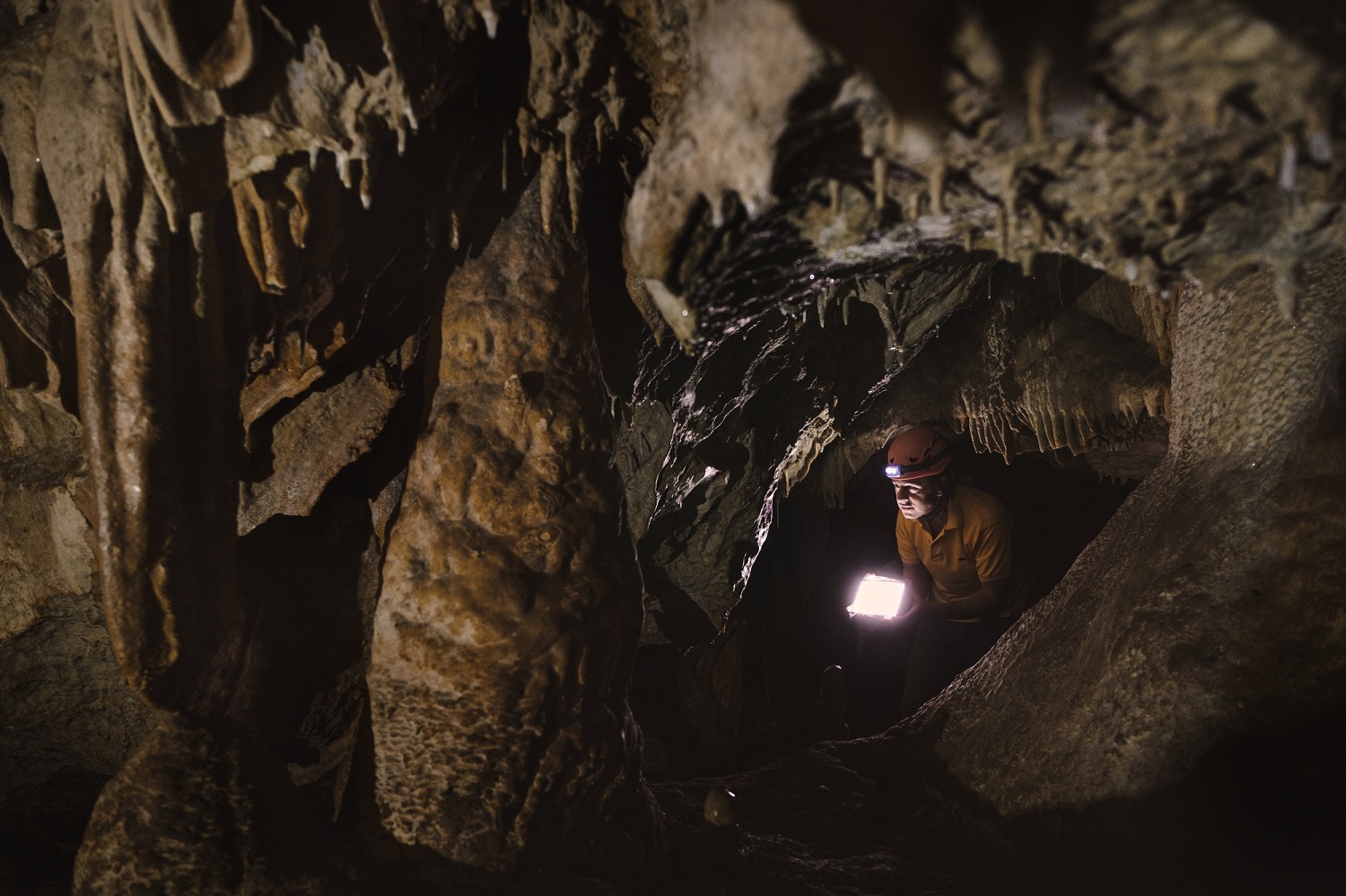 Si inizia con una botola, una fune, la discesa di circa 10 metri al di sotto del livello calpestato del percorso turistico. Perché GeoEsperienza, tra le tante particolarità, ha quella di essere una dimensione, anzi una geodimensione, diversa dalle Grotte di Castelcivita conosciute. Si gattona poi fino alla radice: l’intricata trama di un fico che, dal piazzale all’aperto, ha conquistato il sottosuolo calandosi con le proprie estensioni vegetali per metri e metri fino a nutrirsi della Terra più profonda. Tutto il percorso è completamente forgiato dall’azione di acqua e tempo, cioè che ne è nato lascia increduli, la loro pazienza nel costante lavorio ripagata da risultati unici ed irripetibili. Le cinque colonne, l’incontro millenario tra stalattiti e stalagmiti, sono il checkpoint in cui GeoEsperienza cambia improvvisamente ed incredibilmente forma: quello che è stato visto ed esplorato fino a quel punto, assume un nuovo aspetto, che trasforma e cambia il modo di esplorare e proseguire, gli ambienti, i movimenti. Non si può svelare oltre, è un luogo da vivere e scoprire, ma quasi alla fine una menzione la merita la Medusa Bianca, formazione imbiancata dal calcio, che spicca nella grande stanza a forma di cono sulle teste dei visitatori. GeoEsperienza è la nuova offerta multisensoriale ed esplorativa delle Grotte di Castelcivita, aperta al pubblico ed indirizzata a chi vuole vivere le cavità del Sottosuolo dei mitologici Monti Alburni ad un livello di percezione superiore ed alternativo, sulle orme di quegli esploratori che, circa un secolo prima, si sono avventurati nel “Ramo N” tra stupore, meraviglia e desiderio di scoperta. Tre cose che sarà possibile, dal 9 Luglio, provare di persona.