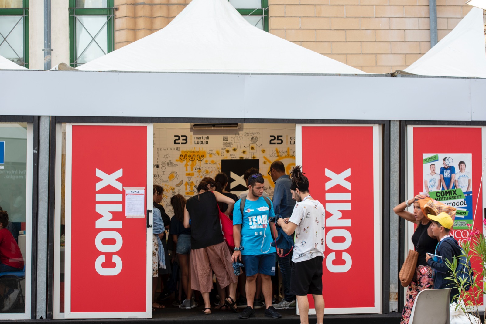 Attraverso le letture animate, i giffoners potranno vivere avventure divertenti insieme a Pimpa. Con i laboratori creativi, i giurati potranno chiedere agli street artist presenti allo stand di Comix di personalizzare zaini ed altri prodotti per la scuola, per renderli ancor più unici. Sempre in tema di street art, vari artisti selezionati da Comix si esibiranno in una stupefacente installazione live a tema Giffoni 2019 che coinvolgerà alcune location del Festival.