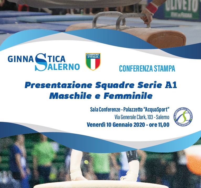 Si svolgerà domani, venerdì 10 gennaio 2020 alle ore 11:00, presso la sala conferenze del Palazzetto Acquasport, in via Generale Clark – 103 a Salerno, la conferenza stampa di presentazione delle squadre Serie A1 (maschile e femminile) di Ginnastica Salerno.