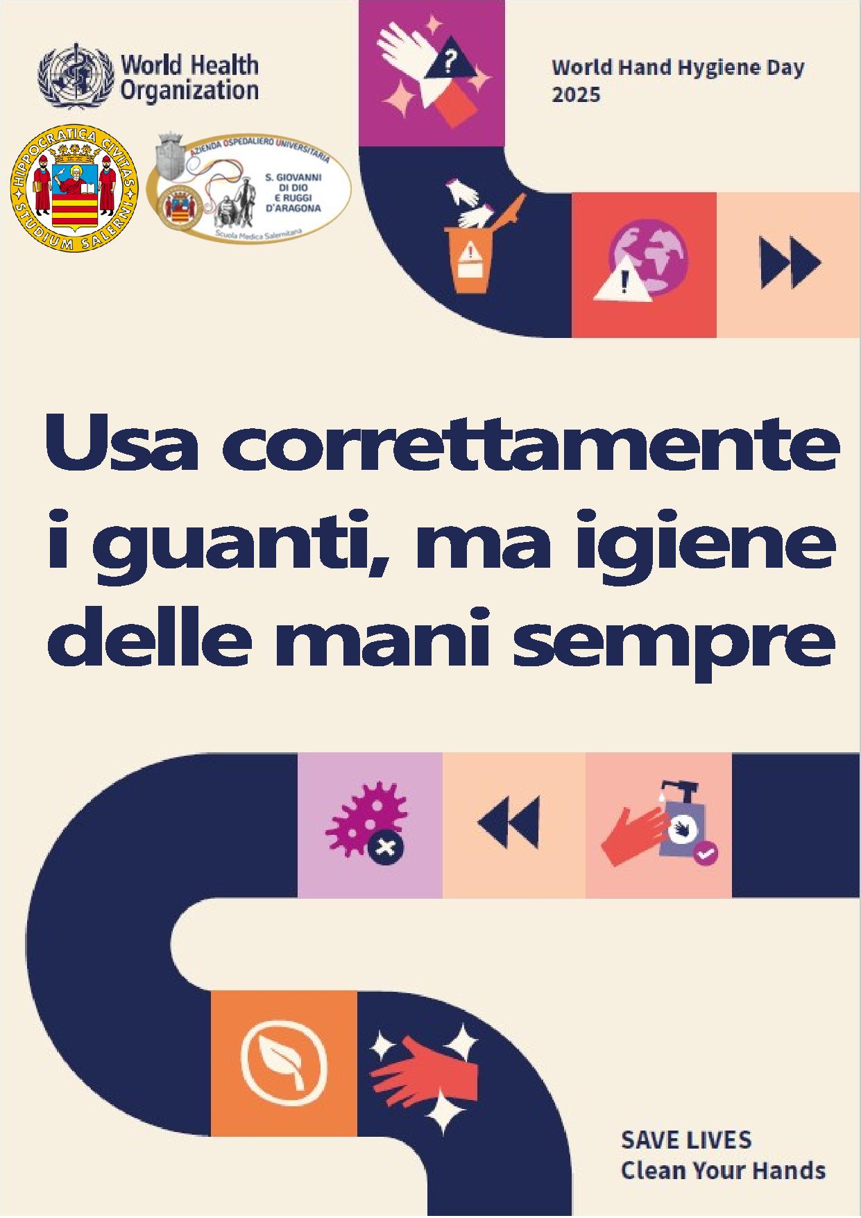 Lo slogan 2025 “It might be gloves. It’s always hand hygiene”, ha come mission la promozione di un’appropriata tecnica di lavaggio delle mani, in conformità ai 5 momenti dell’OMS e il corretto utilizzo dei guanti, nel rispetto delle linee guida specifiche, a tutela dell’ impatto ambientale che essi possono avere dalla produzione allo smaltimento. Da sottolineare che il Piano d’Azione Globale e il quadro di monitoraggio dell’ OMS 2024-2030, raccomandano l’inclusione dell’igiene delle mani nelle strategie nazionali di prevenzione e controllo delle infezioni, nonché nelle procedure operative standard a livello di struttura, che diventano necessarie se si considera che la mancata igiene delle mani, causa il 50% delle infezioni ospedaliere.