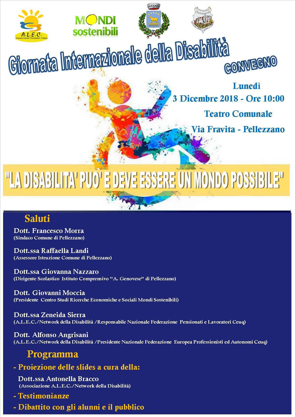Lunedì 3 dicembre 2018 nel Teatro Comunale di via Fravita in Pellezzano verrà celebrata la “Giornata Internazionale della Disabilità” con l’incontro “LA DISABILITÀ PUÒ E DEVE ESSERE UN MONDO POSSIBILE”.