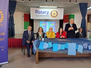 Tre computer portatili dotati di software GECO Kit Bes con singola voce italiana e inglese ad uso degli alunni con Disturbi Specifici dell’Apprendimento e quattro licenze GECO Kit Bes con singola voce italiana e inglese ad uso degli insegnanti di sostegno, sono stati donati, sabato mattina, in occasione della “Giornata Mondiale per la Consapevolezza sull’Autismo”, alla Dirigente Scolastica dell’Istituto Comprensivo “Rita Levi Montalcini” di Salerno, la professoressa Ida Lenza , dal “Rotary Club Salerno Est” presieduto dal professor Rodolfo Vitolo:” Quest’ iniziativa rientra nell’ambito di un percorso che abbiamo avviato quest’anno, che tende a soffermarsi su tutti i vari momenti dell’inclusività nella nostra realtà sociale” ha commentato il presidente Vitolo. La professoressa Ida Lenza ha spiegato che nell’Istituto da lei diretto ci sono molti bambini affetti dallo spettro autistico:” Solo in questo plesso abbiamo circa dieci alunni che hanno questo tipo di sindrome e che hanno bisogno dell’aiuto di tutti affinché non diventino “invisibili”, soprattutto quando usciranno dal mondo scolastico”. L’Assessore alle Politiche Sociali, Paola De Roberto, ha ricordato le tante iniziative dedicate all’autismo messe in campo dall’Amministrazione Comunale:” Diamo supporto al mondo della scuola con le educatrici scolastiche che affiancano gli insegnanti di sostegno. Stiamo lavorando anche sugli autistici adulti. C’è bisogno di fare rete intorno a questa problematica e seguire percorsi condivisi che coinvolgano tutti”. Il Consigliere Regionale Franco Picarone ha ricordato che saranno erogate dalla Regione risorse per la presa in carico sociale e per i percorsi terapeutici delle persone autistiche:” Bisogna portare i modelli terapeutici all’interno delle situazioni di vita quotidiana di queste persone. La Regione Campania, che è sempre stata sensibile rispetto a questa tematica, continuerà a lavorare per dare copertura finanziaria all’assistenza socio -sanitaria alle persone che vivono questi problemi”. L’ideatore e fondatore del Giffoni Film Festival, il dottor Claudio Gubitosi ha sottolineato l’importanza dell’iniziativa:” Siamo qui insieme ai ragazzi per far capire il valore della coesione, della partecipazione, e per essere vicini a quei ragazzi che rischiano di diventare “Invisibili” che è il tema dello scorso anno del “Festival di Giffoni” che quest’anno è invece “Indispensabili”: ogni ragazzo è indispensabile per sé stesso, per la famiglia, per la scuola, per la società”. Il Direttore del Festival ha anche annunciato che quest’anno saranno seimila i giurati del Festival e che la “Multimedia Valley” sarà una delle principali location del nuovo film prodotto da Cattleya/Isola Verde Films, distribuzione Paramount+:” Nella prima metà di maggio, Giffoni si trasformerà in un set cinematografico. Il titolo provvisorio del film è “Cassino in Ischia”: saranno coinvolti bambini, giovani e adulti del territorio chiamati a fare da comparse; chi vuole vivere da protagonista la magia del cinema potrà partecipare al casting che si terrà giovedì 6 aprile dalle 14:00 alle 18:30, presso le sale della Multimedia Valley. La produzione ricerca: ragazze e ragazzi dai 10 ai 16 anni con accompagnatori che, in scena, dovranno simulare la partecipazione al Giffoni Film Festival; ragazzi di 18 anni; uomini e donne tra i 25 e i 60 anni. Le riprese avverranno a Giffoni nella prima metà di maggio e avrete la possibilità di farne parte”. Il dottor Salvatore Troisi , Vicepresidente dell’associazione “Ombra Luce Onlus Tilde Salerno”, presieduta dal dottor Angelo Cucco, che ha sede a Giovi, ha ringraziato il presidente e tutti i soci del “Rotary Club Salerno Est” per il significativo contributo donato dal Club all’associazione per istituire un corso di musicoterapia dedicato ai ragazzi autistici e con problemi di ritardo psicomotorio:” Un dono prezioso perché la musica consente di raggiungere dei risultati che sarebbe impossibile ottenere con altre metodiche: riesce a far emergere delle abilità cognitive che nessun altro strumento riesce a mettere in gioco in maniera così potente” . A far sì che il progetto rotariano si realizzasse è stato fondamentale il contributo del Past President Antonio Vairo, responsabile dei progetti del Club, soprattutto quelli relativi all’ambito scolastico, dei soci Maria Vittoria Gargiulo ed Ermanno Lambiase e di tutti i componenti del Consiglio Direttivo. Alcuni alunni della scuola, coordinati dalle loro professoresse, hanno letto, con emozione, alcune poesie “Rime in Blu”, da loro scritte e dedicate alla giornata dell’autismo.