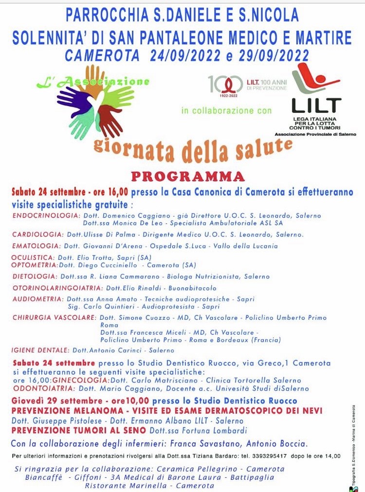Con la partecipazione del Presidente dell’Ordine dei Medici e degli Odontoiatri di Salerno Dott. Giovanni D’Angelo e del Dott. Francesco Saturno – vicesindaco del Comune di Camerota.