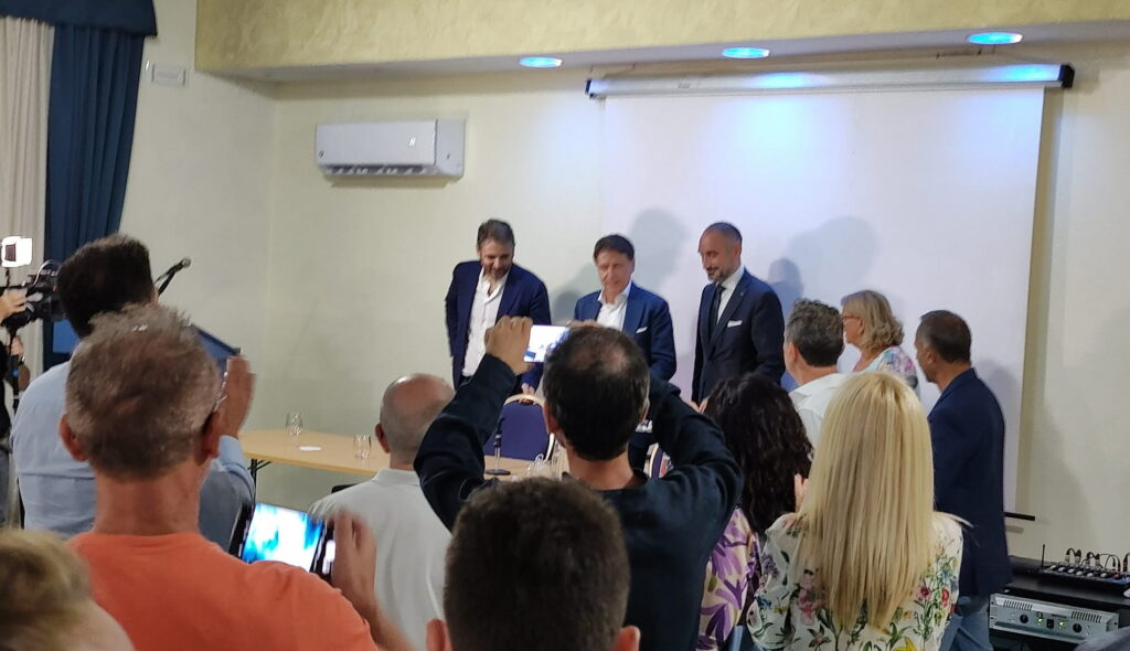 Il presidente Giuseppe Conte, accompagnato dal vice presidente Michele Gubitosa, ha tenuto un discorso breve ma incisivo. Durante il suo intervento, sono stati affrontati rapidamente diversi argomenti di rilevanza nazionale, dall’economia alla politica estera, prima di passare alle questioni più strettamente legate al territorio di Salerno.