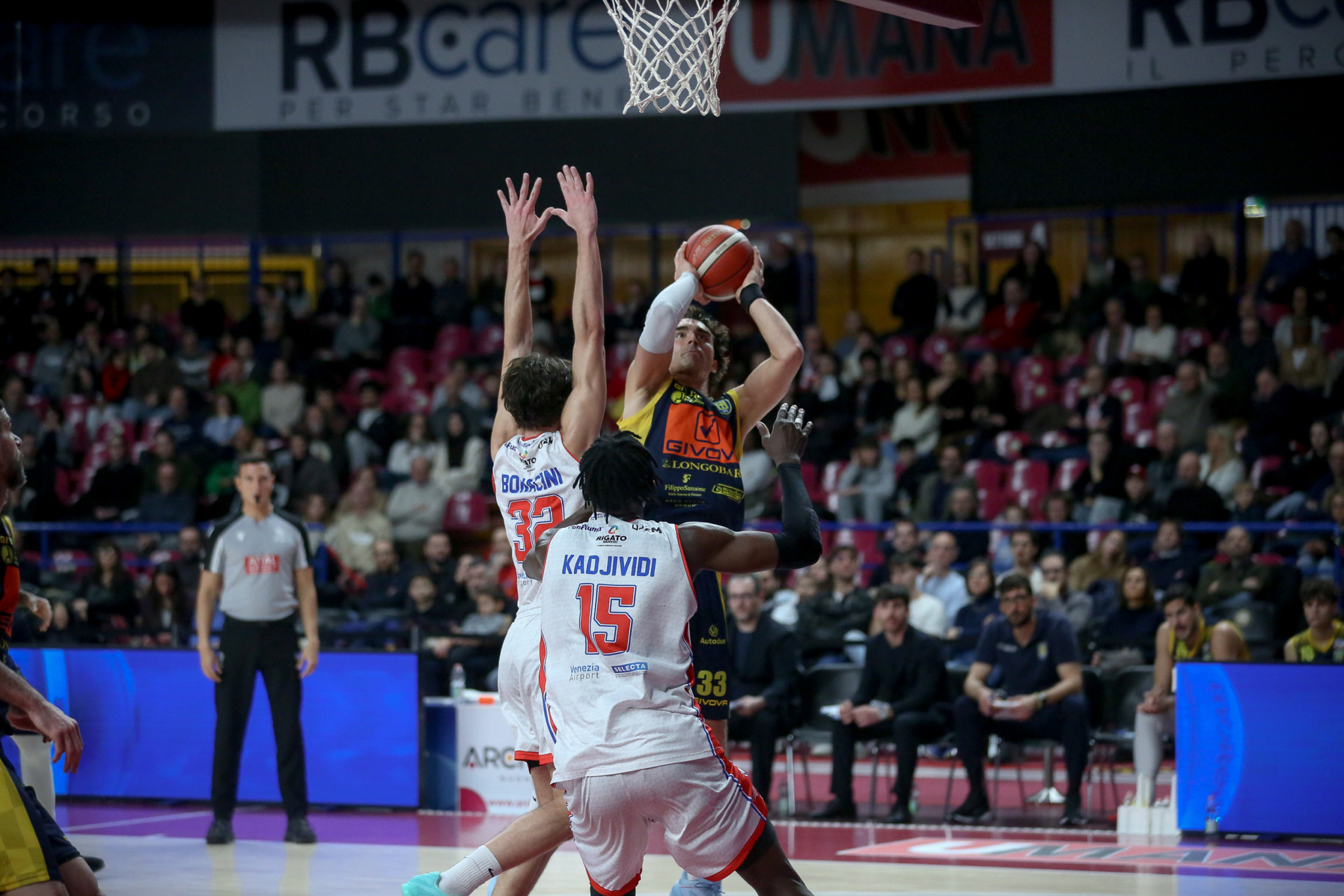 Si riparte con Caroti che piazza una tripla, subito emulato da Giordano. Ma la Givova ha ancora problemi su entrambi i lati del campo. Senza riuscire a entrare nei giochi con continuità e trovare tiri puliti. Così il divario si amplia al 15’: 39-24 (+15 e massimo vantaggio per i padroni di casa). Nel momento peggiore della gara, arriva un primo segnale di reazione di Scafati. Segnano da sotto Pullazi e Allen. Poi, dopo un libero di Knight, Mascolo mette dentro una tripla. E con un parziale di 7-1, il divario si riduce sotto la doppia cifra (40-31 al 17’). L’inerzia della gara cambia. La maggiore qualità tecnica della Givova Scafati e ora abbinata anche una adeguata intensità di gioco. Segnano ancora Pullazi, Caroti e Walker. E gli ospiti si avvicinano fino al -6 (42-36 al 19’). Una tripla di Giordano e un canestro di Knight fermano la risalita dei gialloblu. E si va nello spogliatoio con Mestre che di nuovo prende il largo: 49-38.
