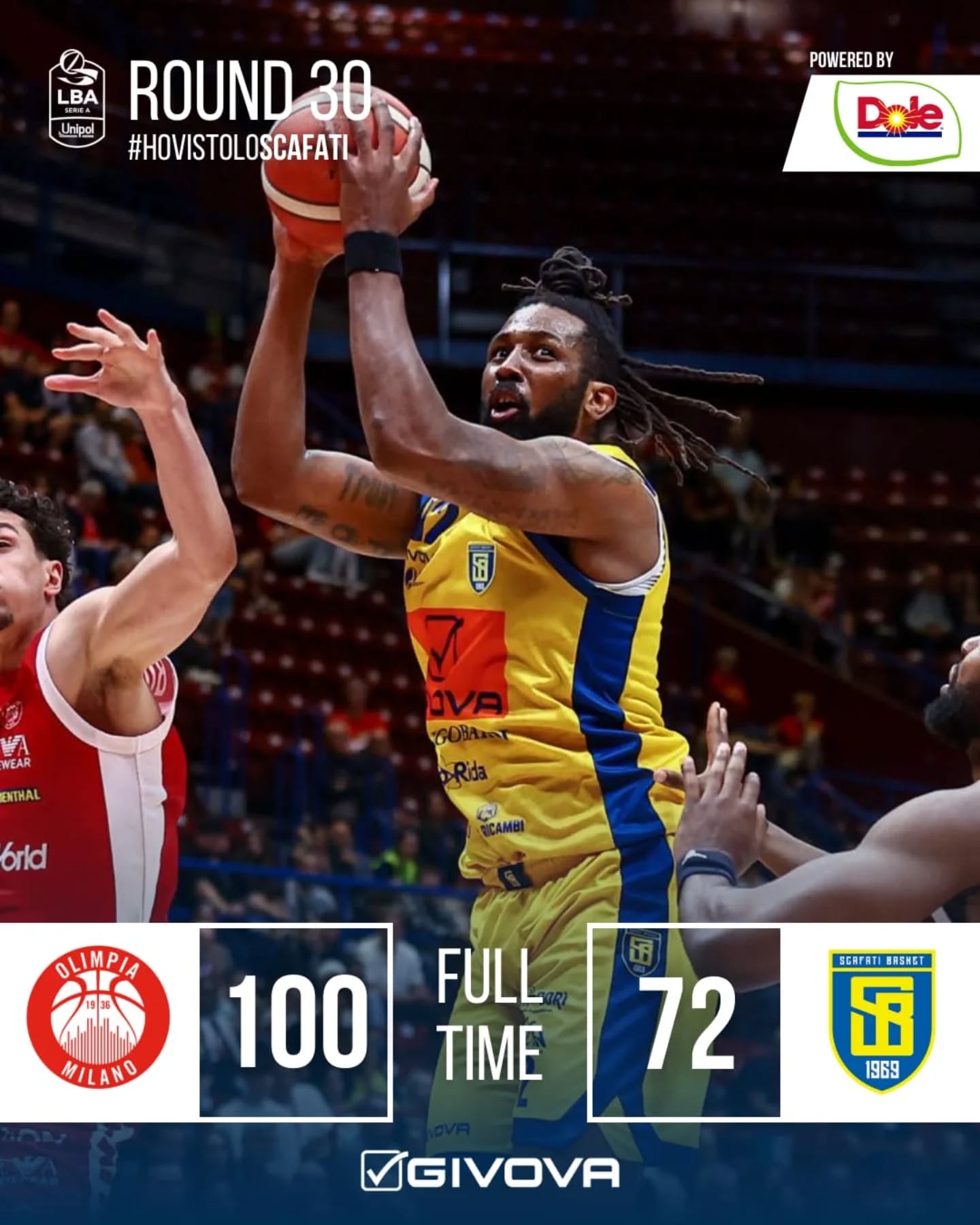 Termina con la sconfitta consecutiva numero undici la sfortunata stagione della Givova Scafati, già condannata alla retrocessione. Il campionato si chiude con il ko all’Unipol Forum di Milano contro l’EA7: il punteggio finale è 100-72.